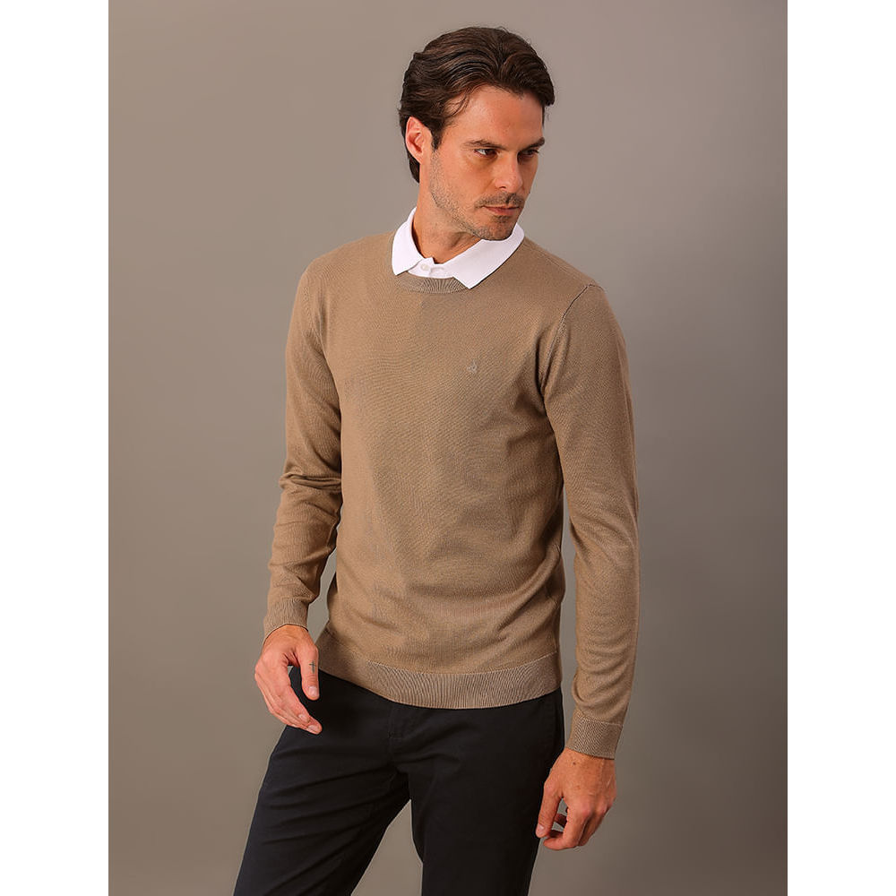 Tricot Masculino Decote Redondo Calvin Klein - Caqui Medio