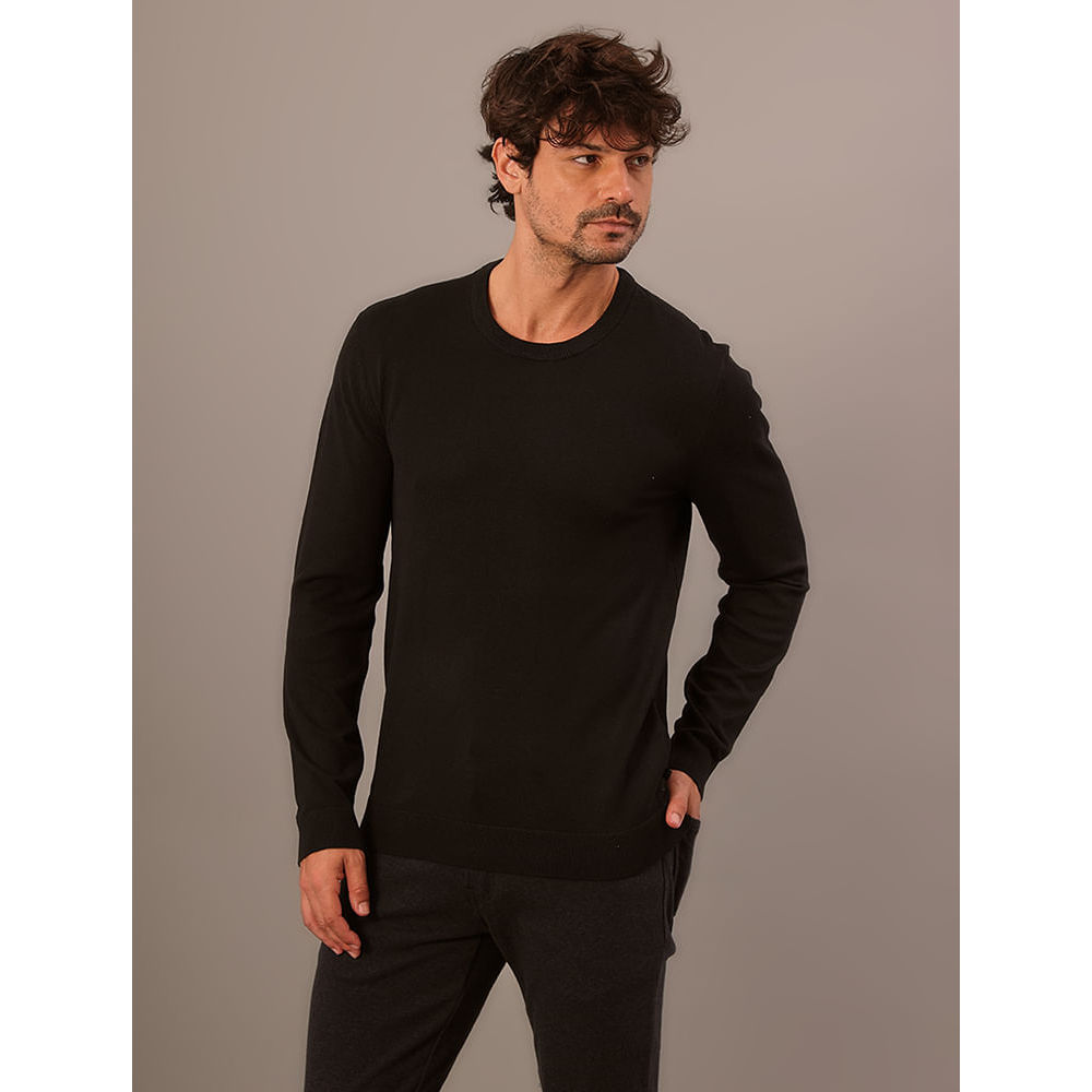 Tricot Masculino Gola Careca Viscose Calvin Klein Jeans - Preto