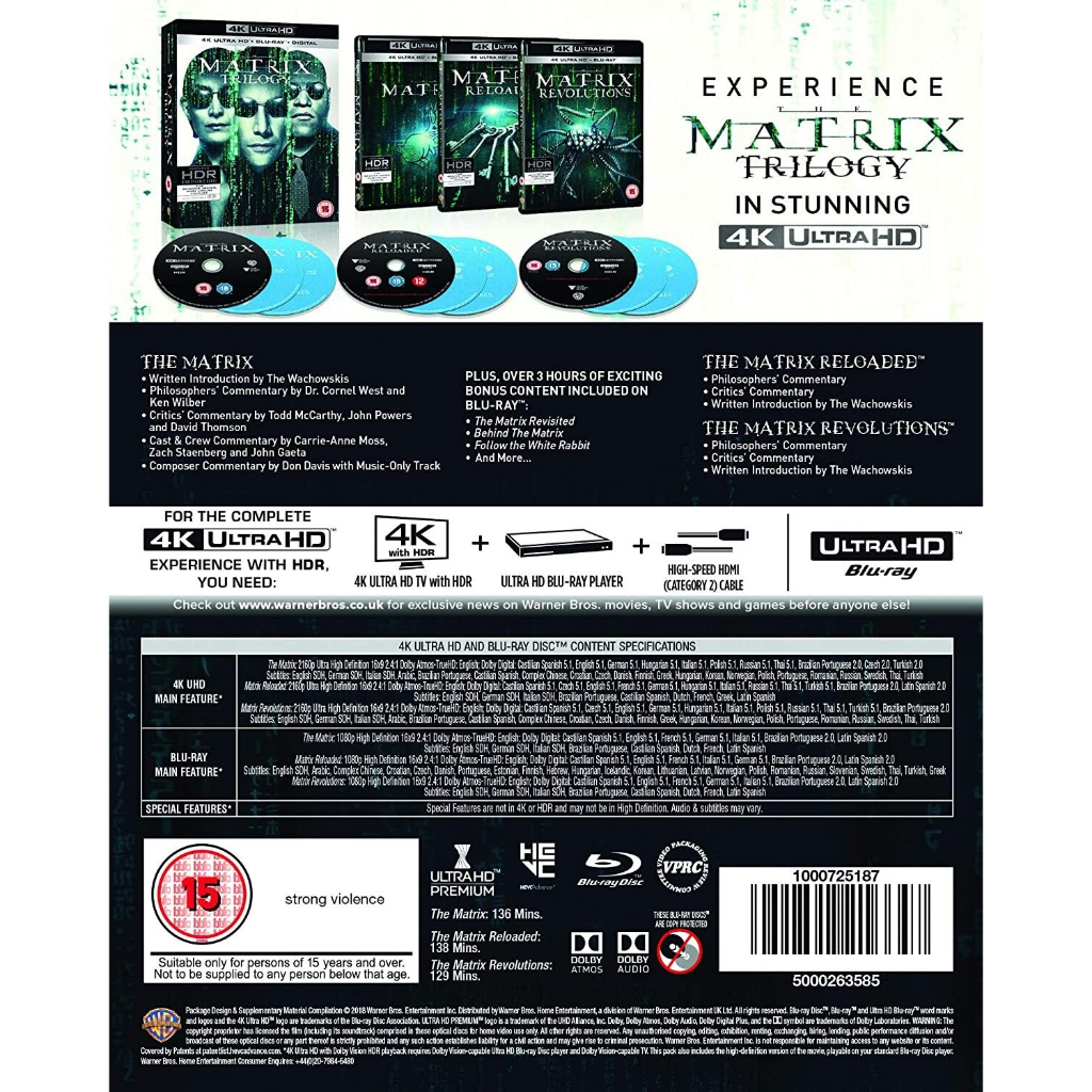 Trilogia Matrix - 4K Ultra HD + Blu-ray - Box Lacrado / 9 Discos