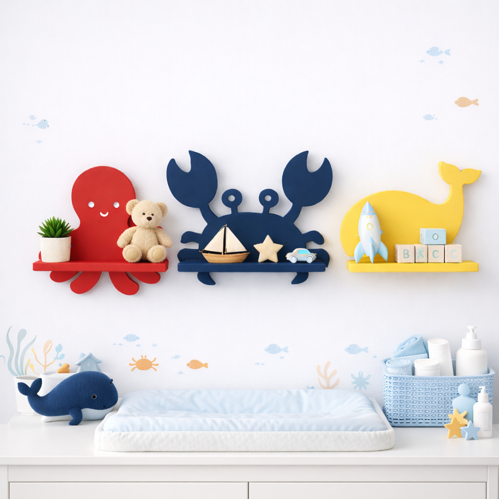 Trio Prateleira Fundo do Mar Decoração Fundo do Mar em MDF