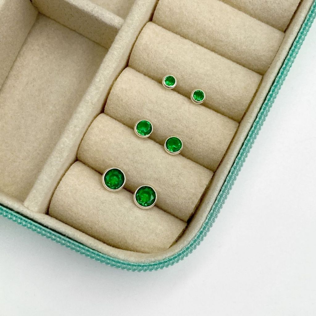 Trio de brincos 925 esmeralda - cravaçao inglesa