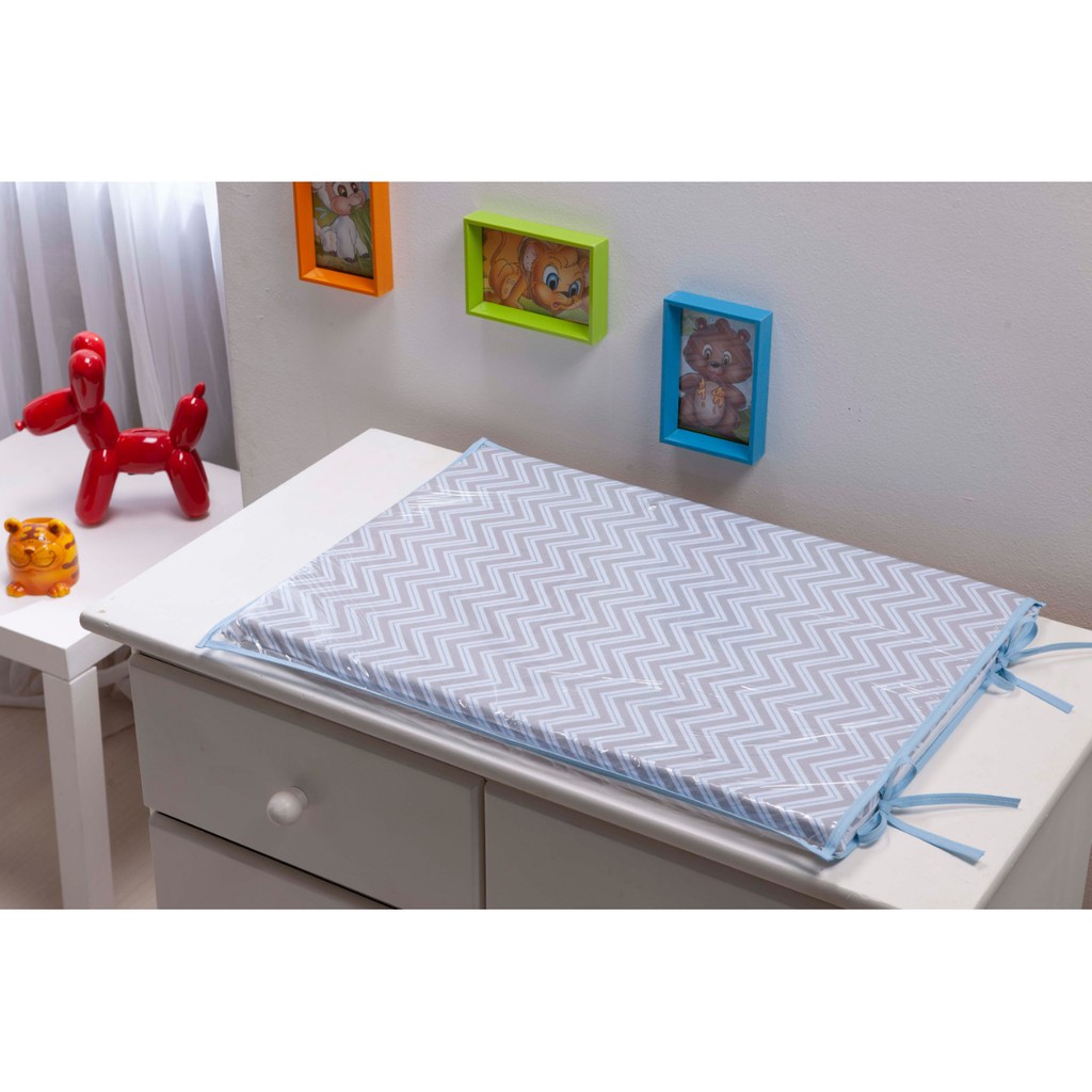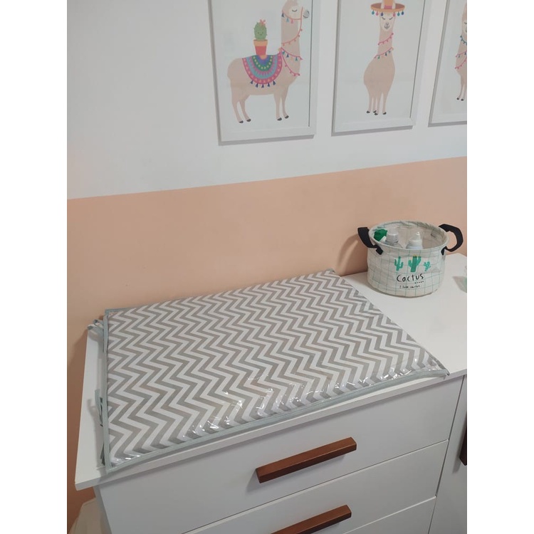 Trocador para comoda de Bebe Chevron Cinza e Branco - Trocador Bebê Cinza Branco
