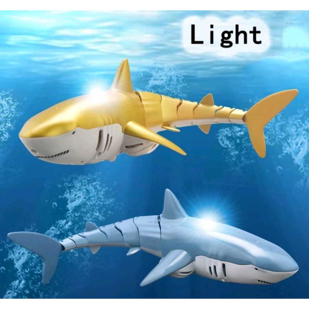 Tubarão Controle Remoto Com Luz Brinquedo Simulação Robô Submarino Animais Peixes Piscina