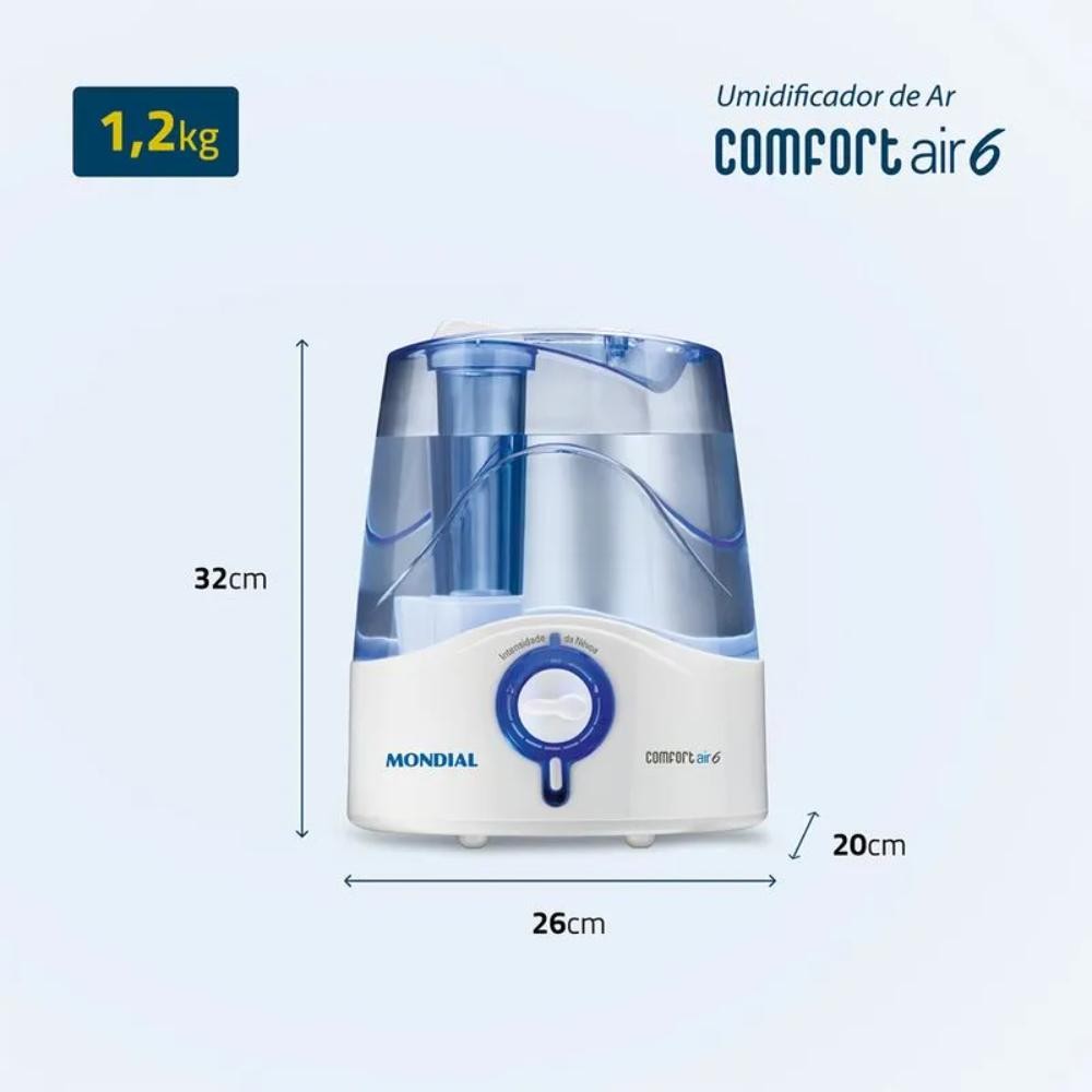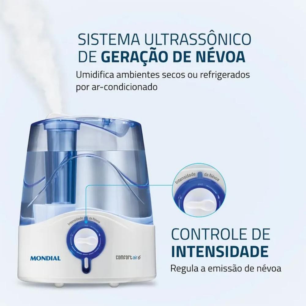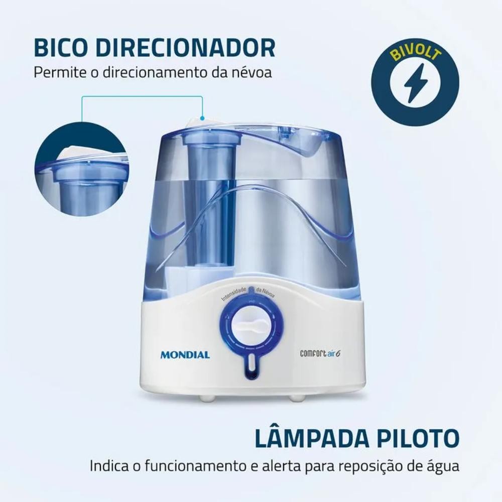 Umidificador de Ar Mondial Comfort Air 6 Ultrassônico Reservatório 4L Branco/Azul Bivolt - UA-07