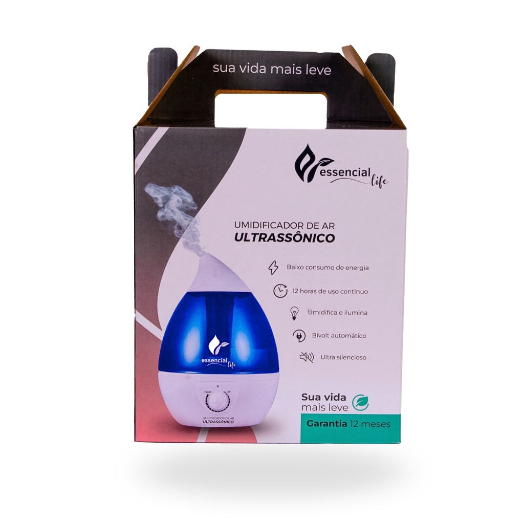 Umidificador de Ar Ultrasonico com Luminária - Bivolt - Essencial Life Bivolt Difusor Silencioso