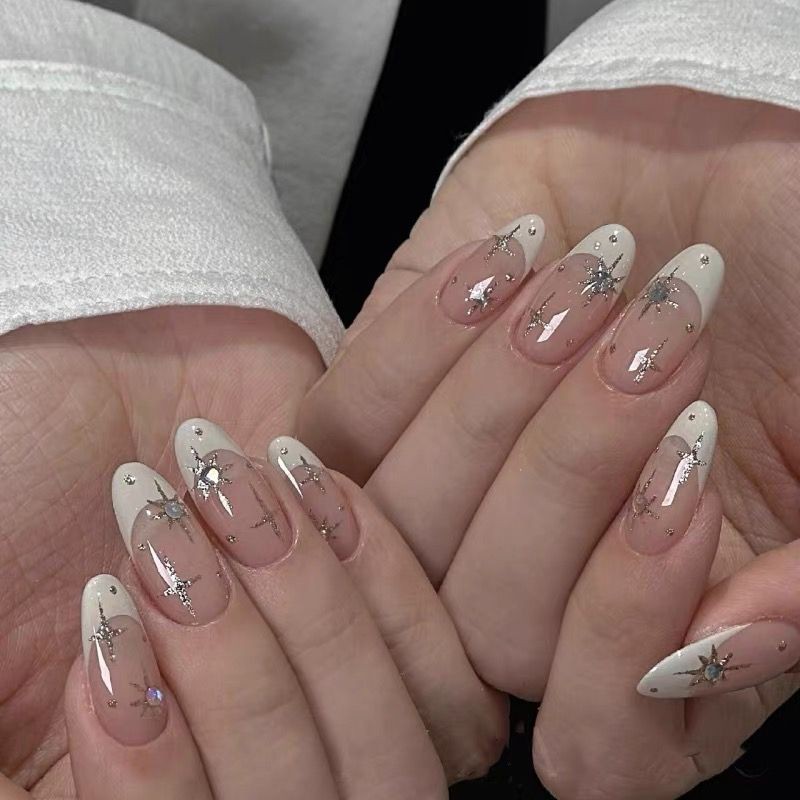 Unhas Postiças Decoradas Unhas De Gel 100%artesanais Francesinhas Branca Com Estrelas