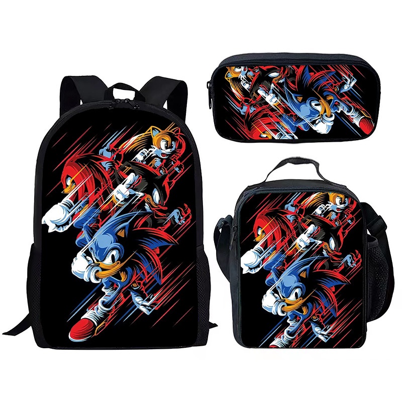 Sonic Student Backpack Lunch Bag Stationery Box Combination Set with Sonic Backpack