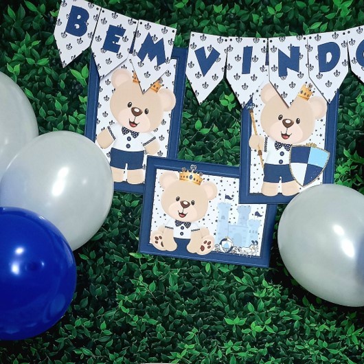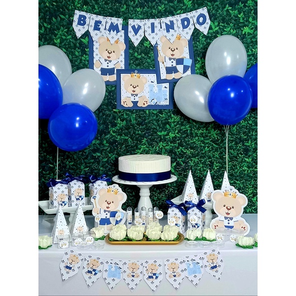 Ursinho Realeza 70 itens decoração cha de bebê Azul Marinho