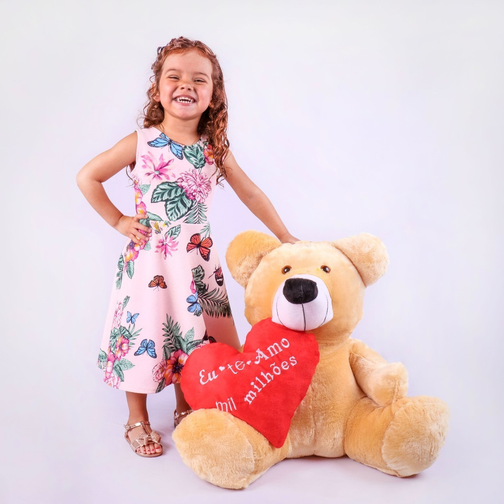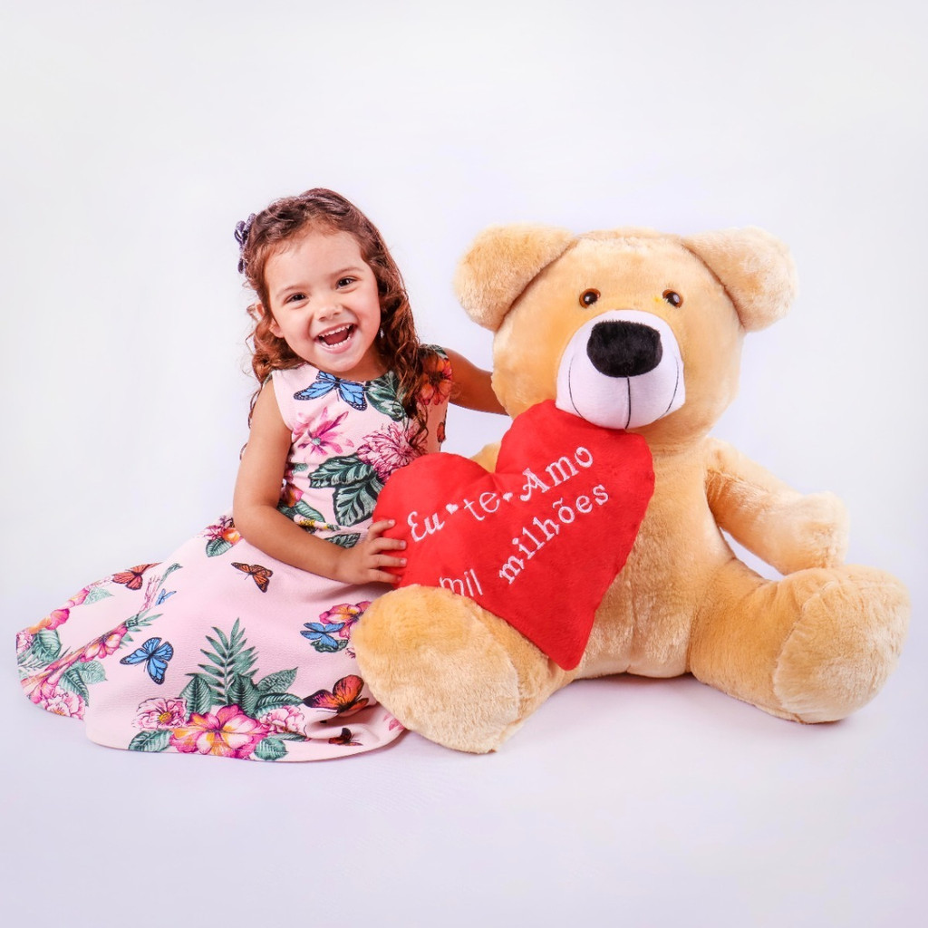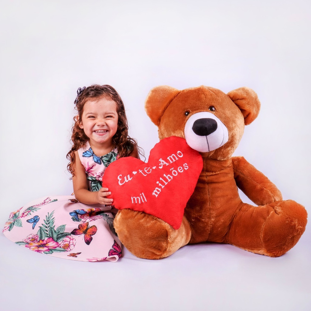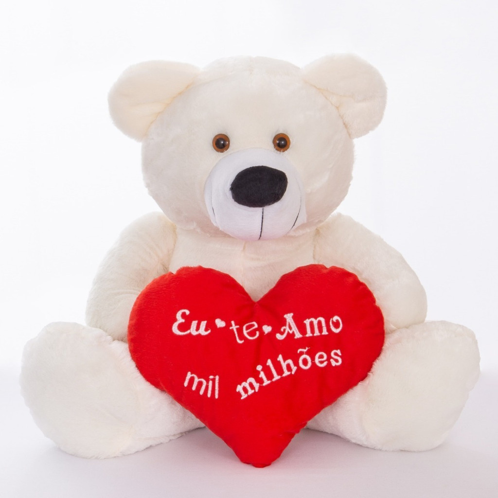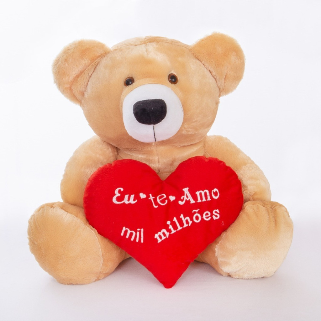 Urso de Pelúcia Grande 60cm com Coração – Presente Romântico Dia dos Namorados ou Aniversário
