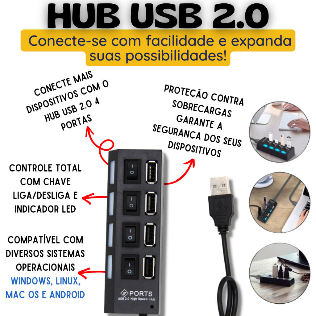 Usb Hub 4 Portas Interruptor e Led + Cabo Otg Adaptador Tipo c / Micro Usb V8 Mobilador