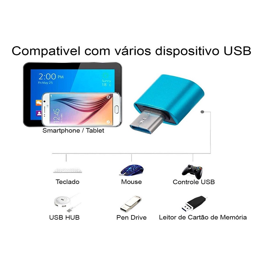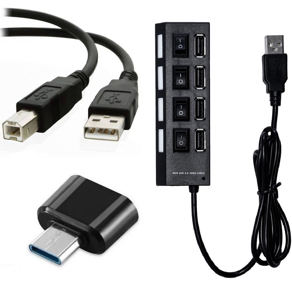 Usb Para Celular Tipo C Mobilador Hub 4 Portas + Otg Tipo C + Cabo Adaptador Para Impressora