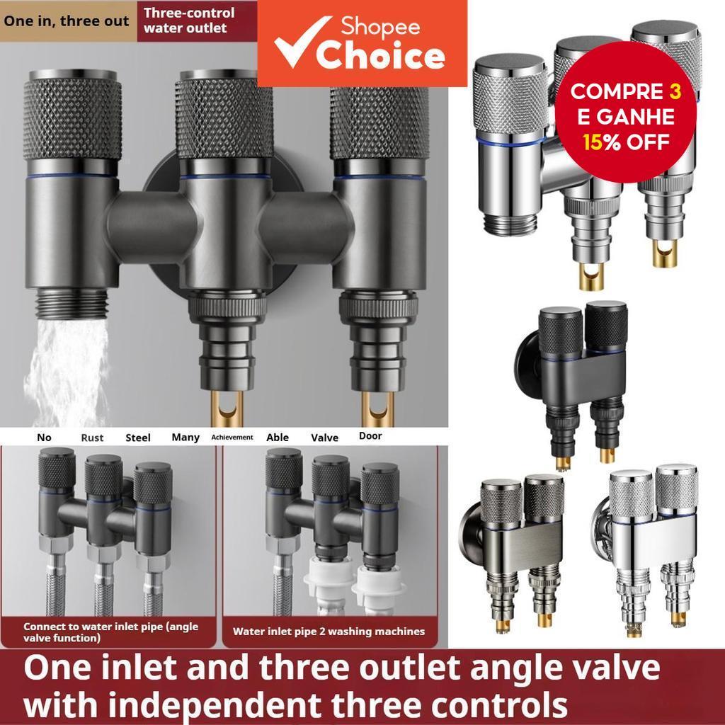 Válvula De Canto De Três Vias De Liga De Alumínio Para Banheiro , Máquina De Lavar , Torneira De Varanda