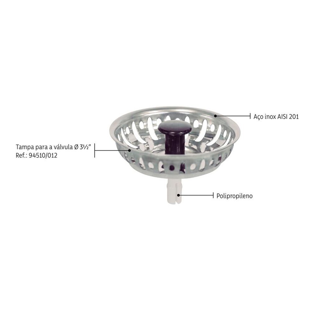 Válvula Tramontina para Pias e Cubas - Inox e Polipropileno sem Escape 3.1/2''