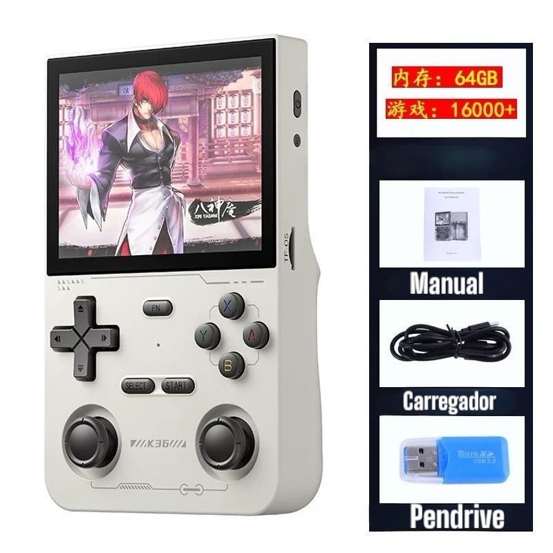 Vídeo Game Portátil R36S + de 15.000 Jogos Console 64g Linux Tela IPS 3.5 Polegadas Handheld Vídeo Game Console Portátil