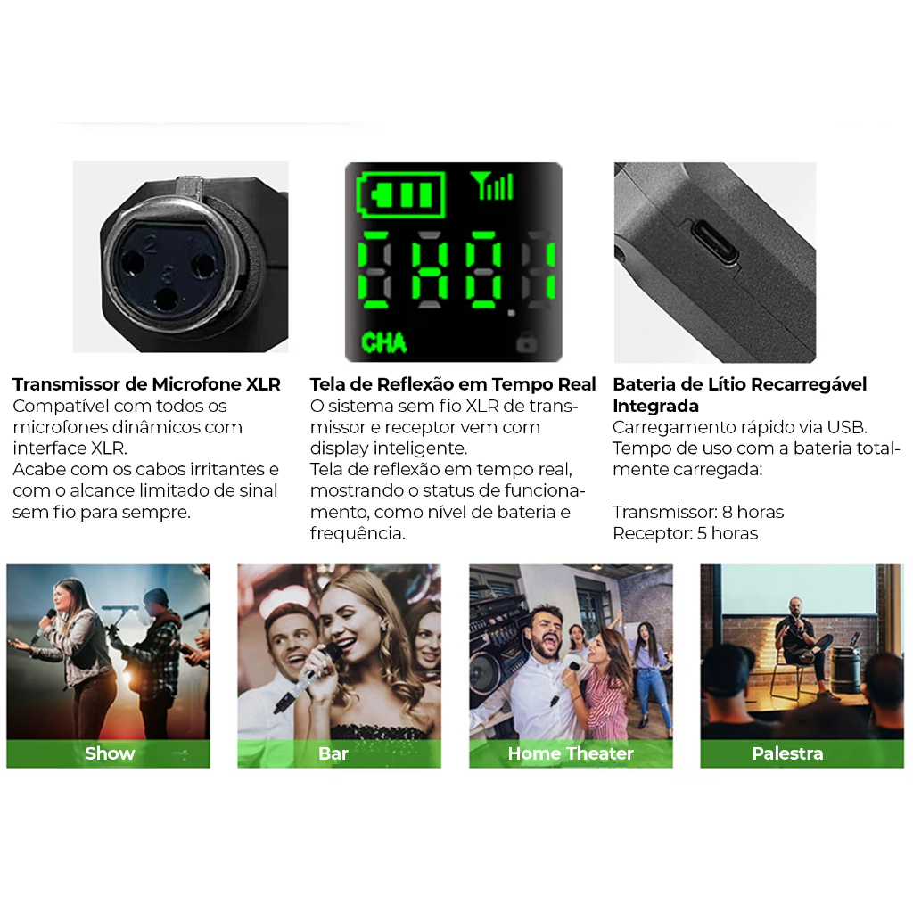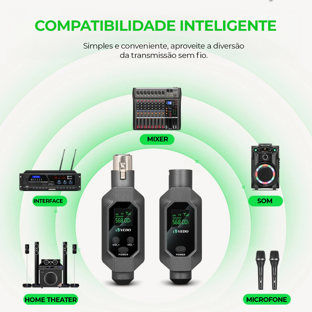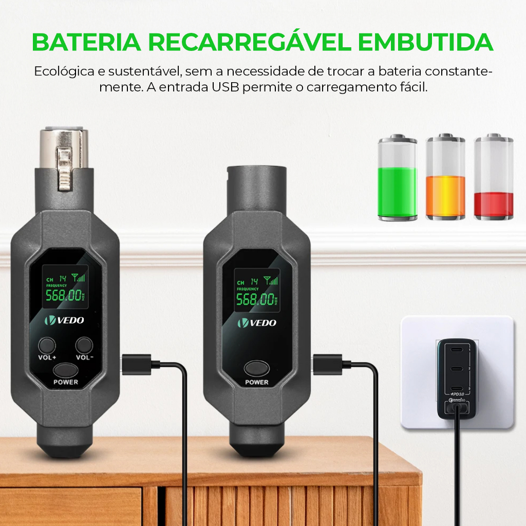 VEDO 2 em1 Conversor De Microfone Sem Fio Transmissor e Receptor de Microfone XLR Para Microfone Dinâmico Mixer De áudio