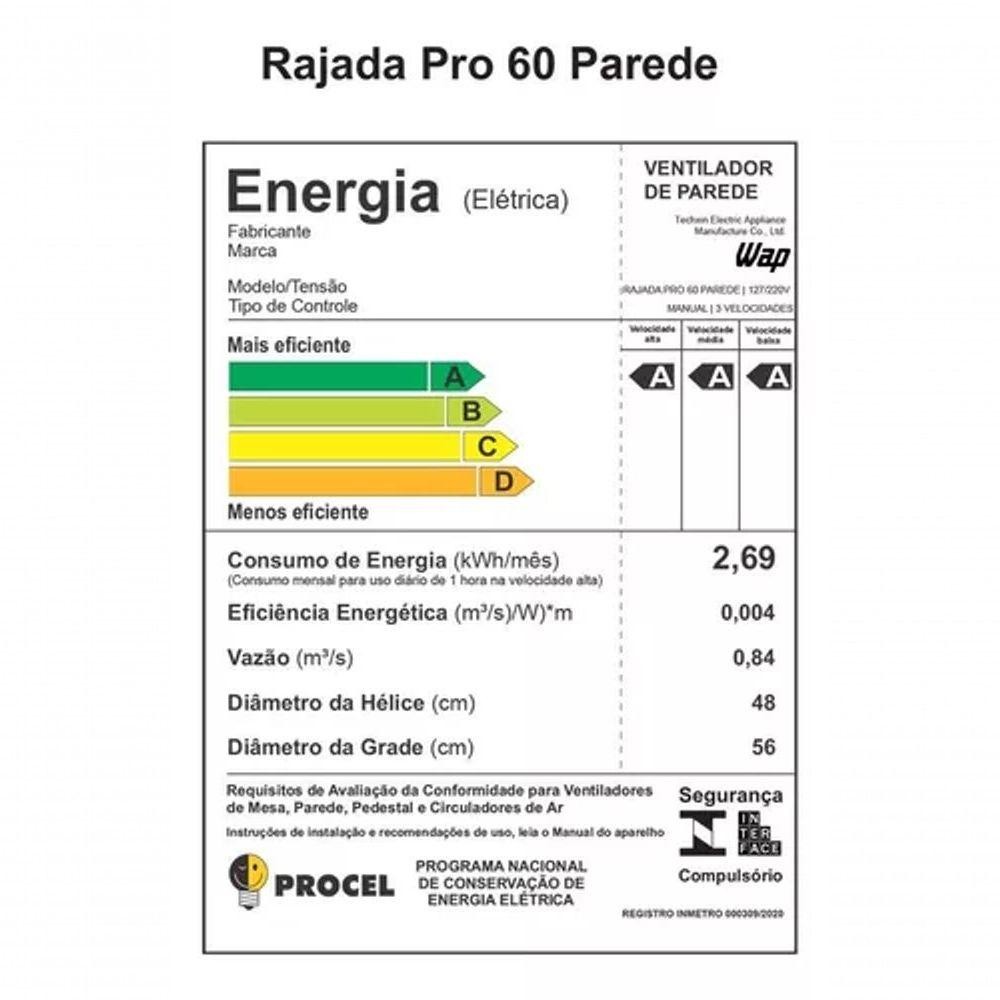 VENTILADOR WAP PAREDE RAJADA PRO PRETO BIVOLT 60CM 5 PAS (FW006661)