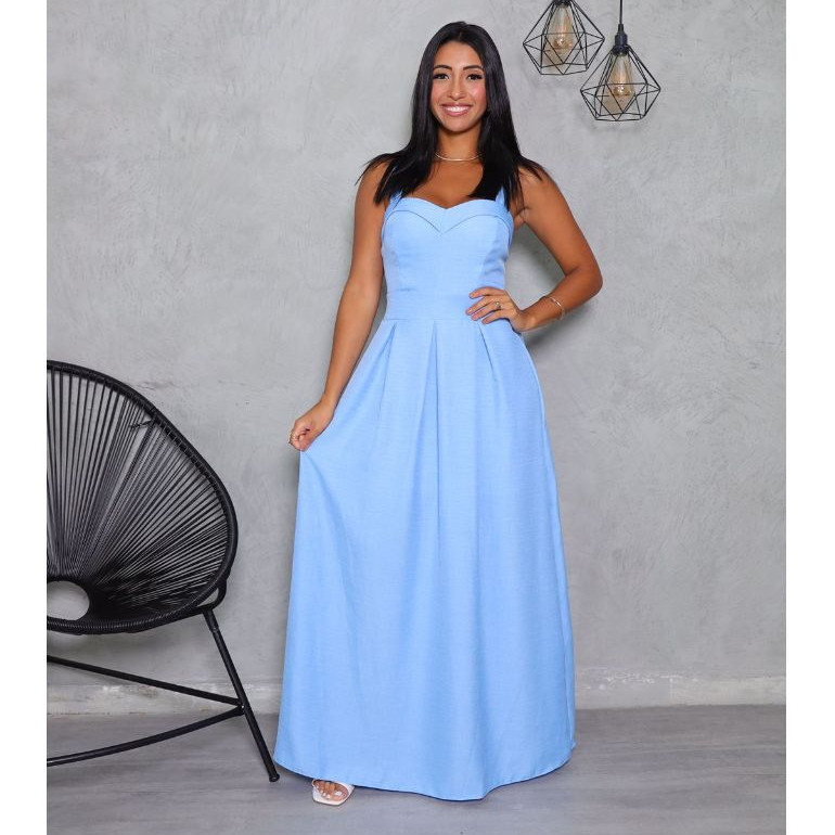 VESTIDO LONGO FFEMENINO CHEMISE MODA EN TENDENCIA COM DETALHE EM LASTEX NAS COSTAS ENTREGA RAPIDA