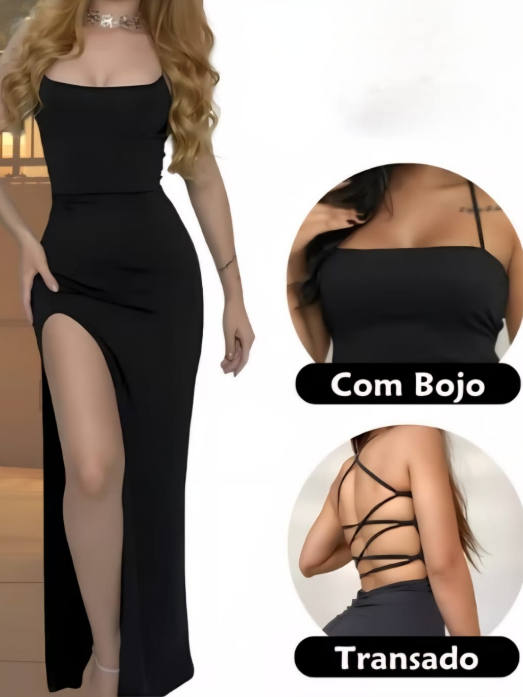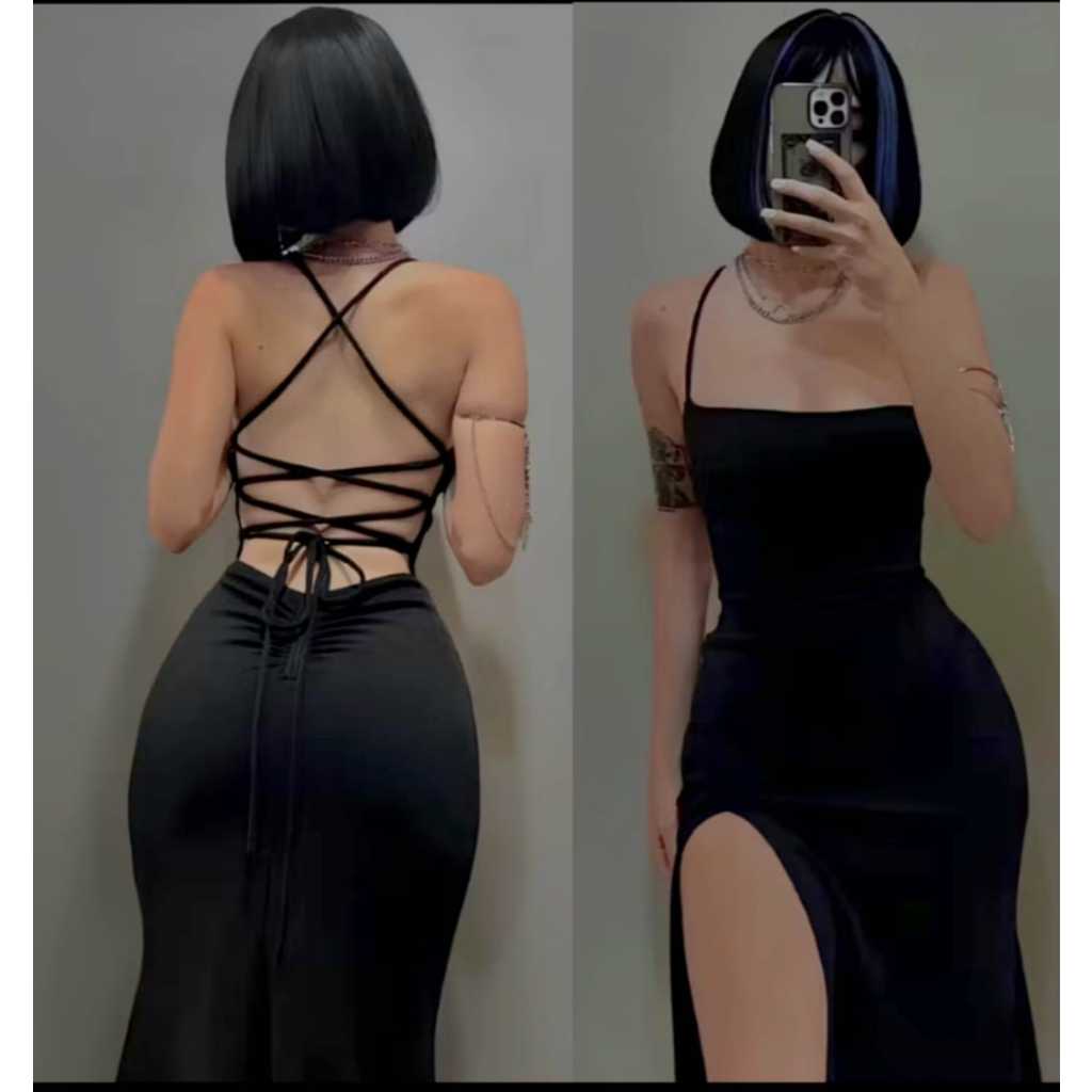 VESTIDO LONGO SUPLEX PREMIUM COM FENDA E BOJO COSTAS TRANÇADAS
