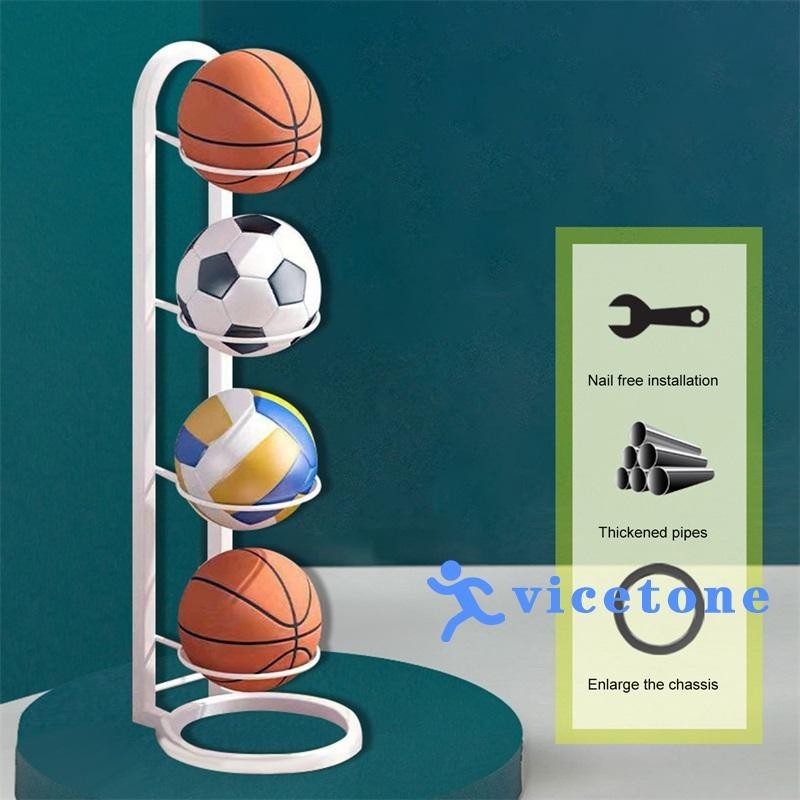 VICETONE-Basketball Ball Rack 4 Tier Storage Holder Suporte De Bolas De Garagem Freestanding Para Futebol De Vôlei De