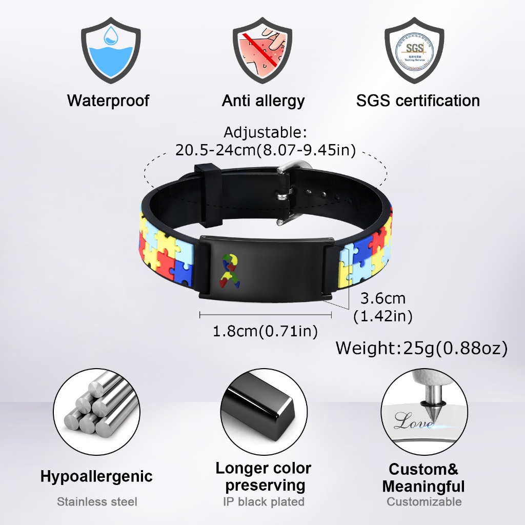 VNOX Cuastom Engrave Pulseira Infantil Autismo Puzzle Colorida - Nome Personalizado Em Aço Inoxidável Para Crianças