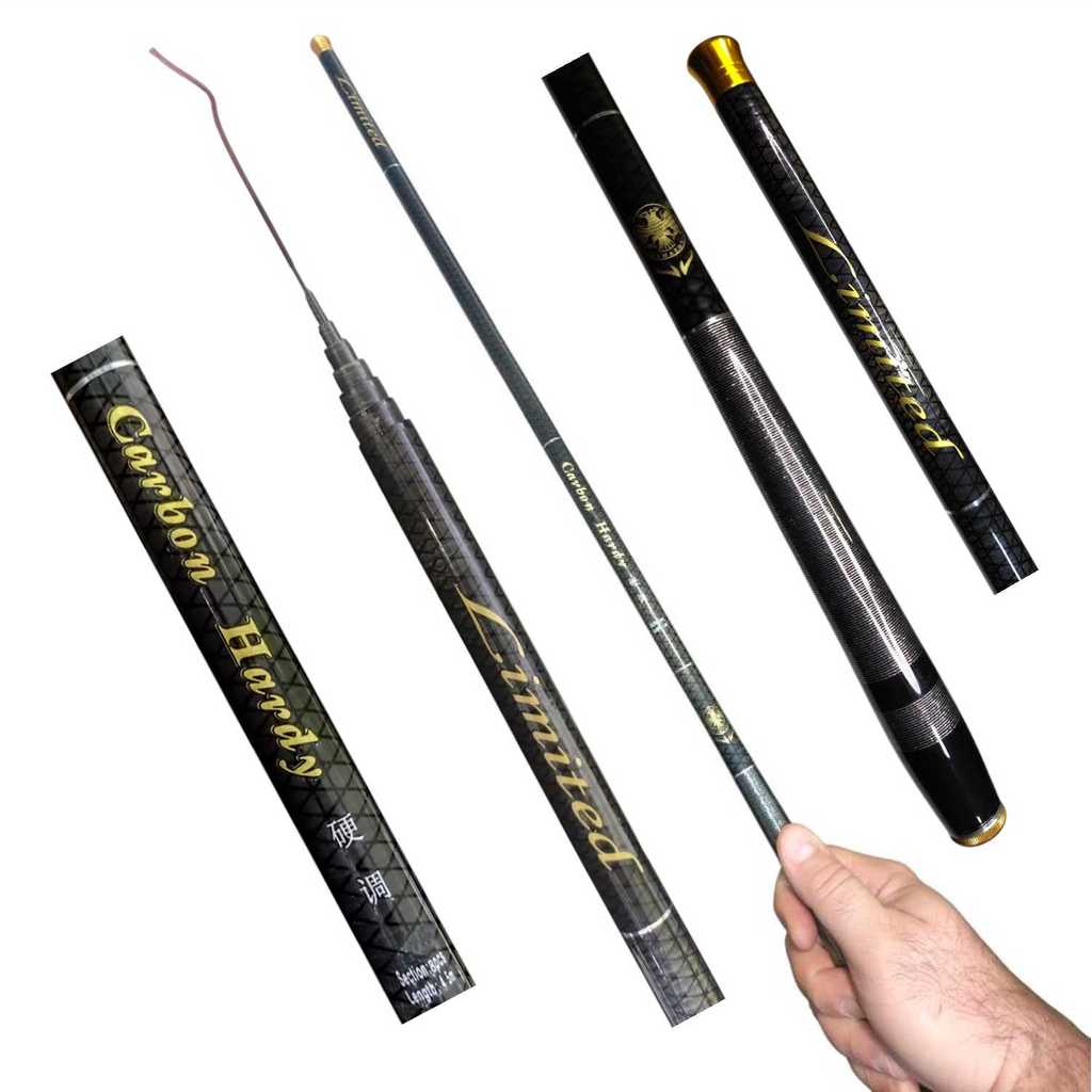 Vara Telescopica 100% Carbono 5,40m Lamazon Limited Gomo Curto - Preta e Cinza