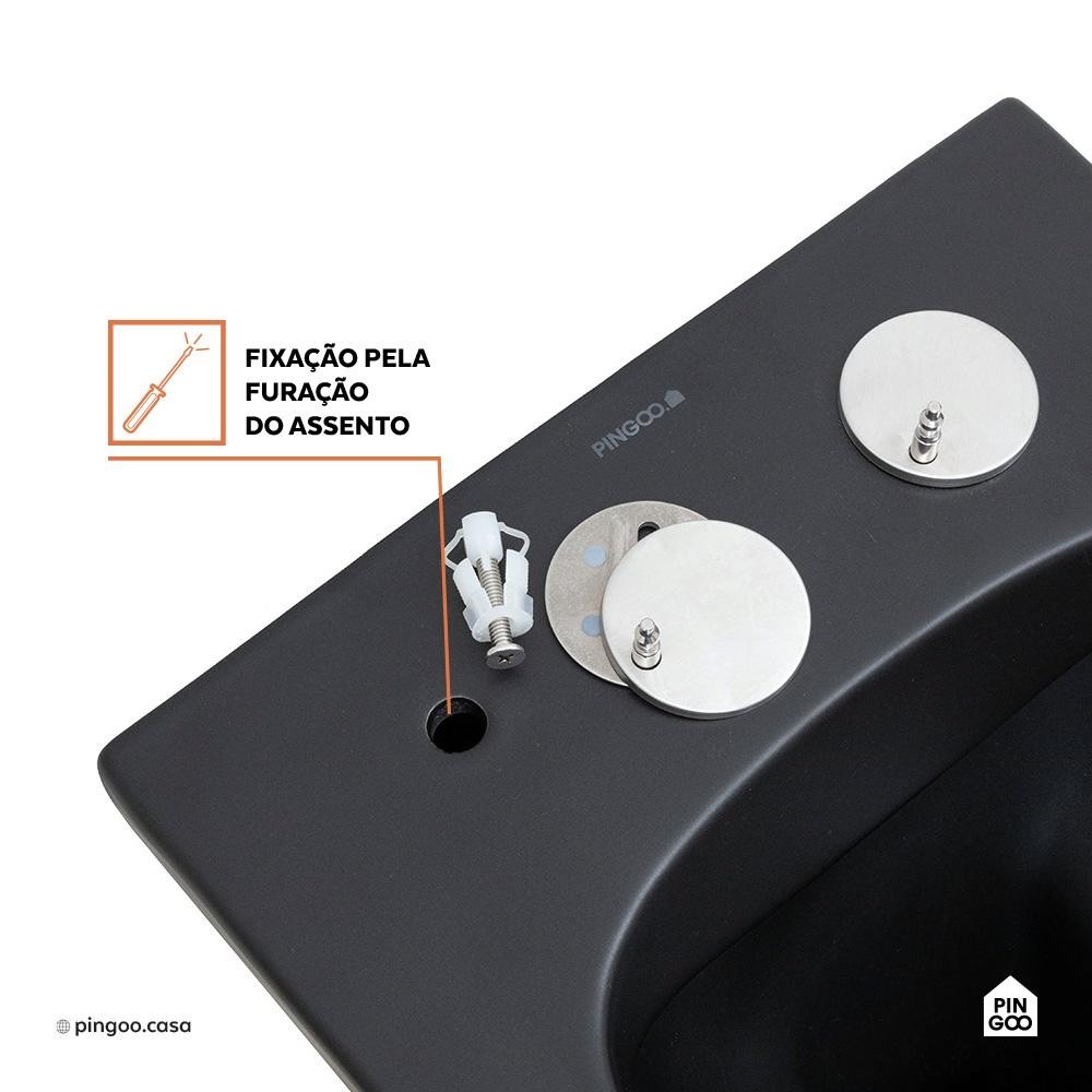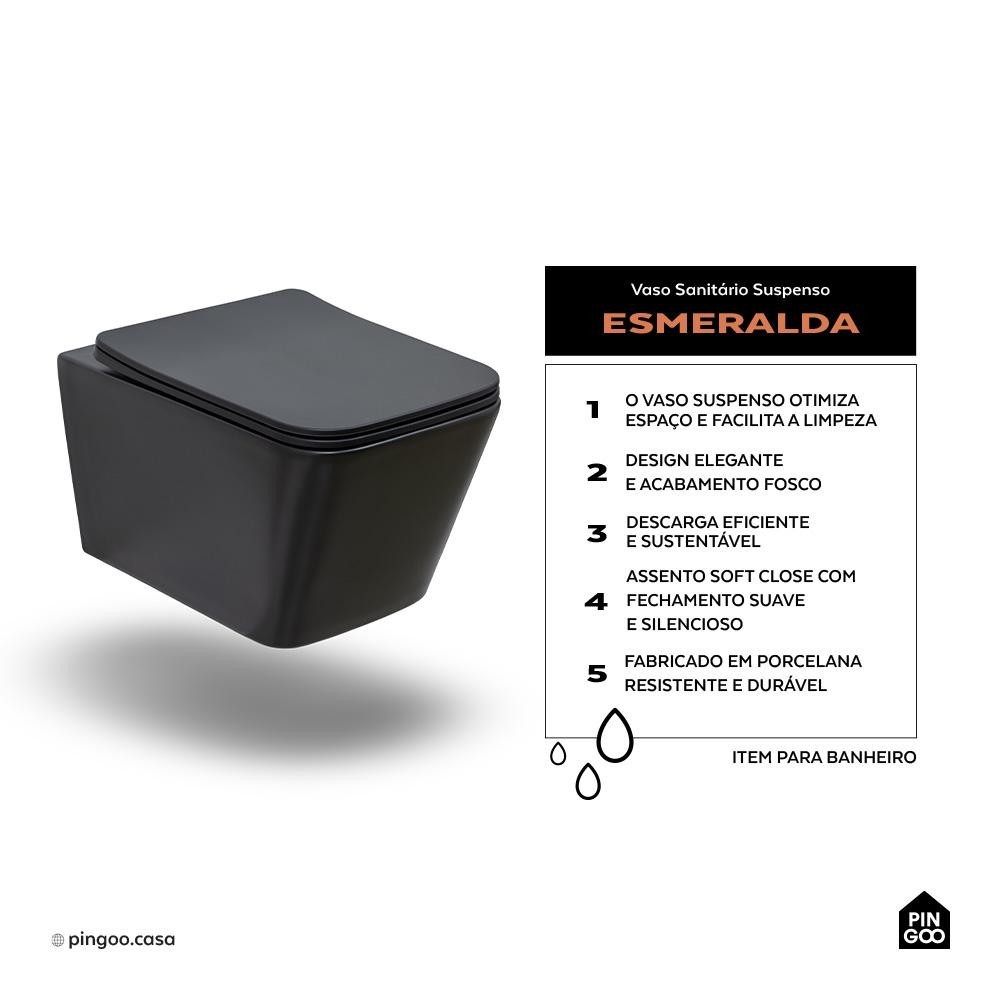 Vaso Sanitário Suspenso Saída Horizontal Esmeralda Preto Pingoo