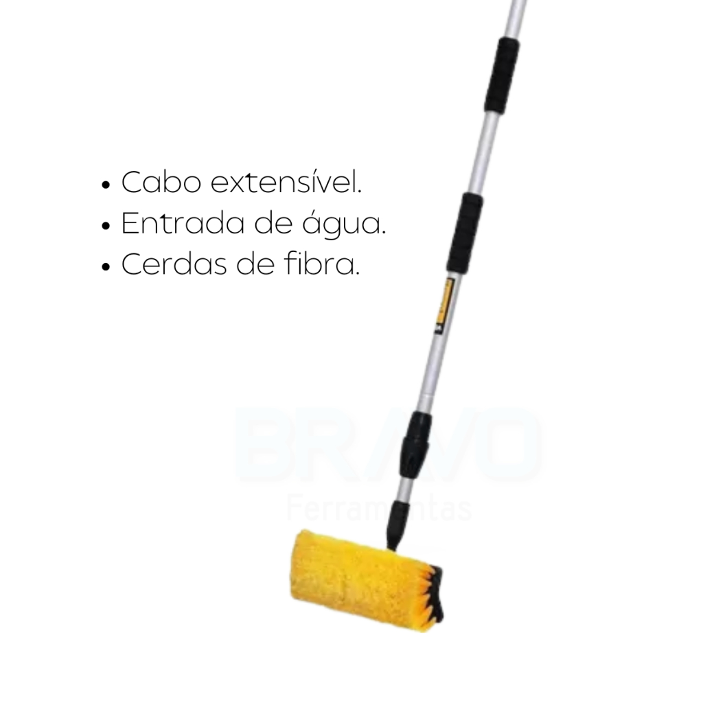 Vassoura Cabo Extensível Com Entrada De Água 1,70m Placa Solar Vonder Limpeza Pneu Vidro