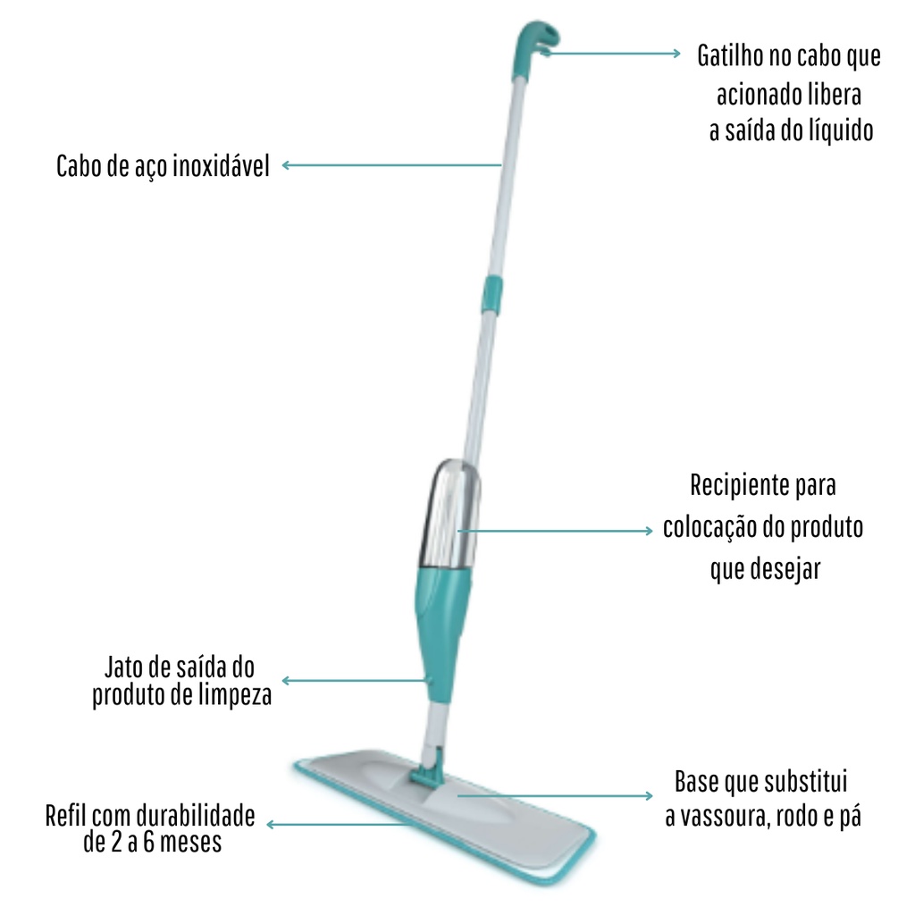 Vassoura Rodo Magico Mop Spray De Limpeza Esfregão + 3 Refis