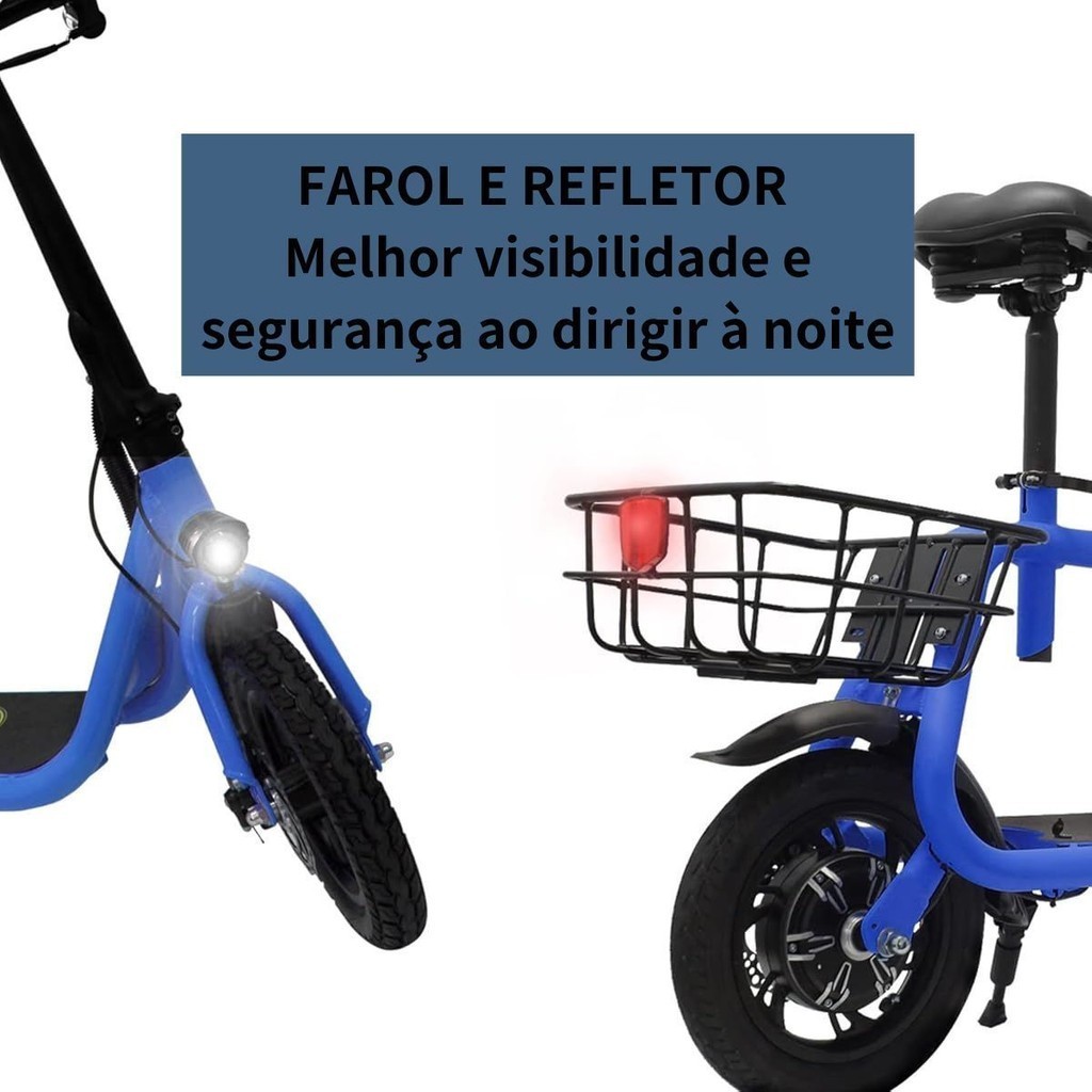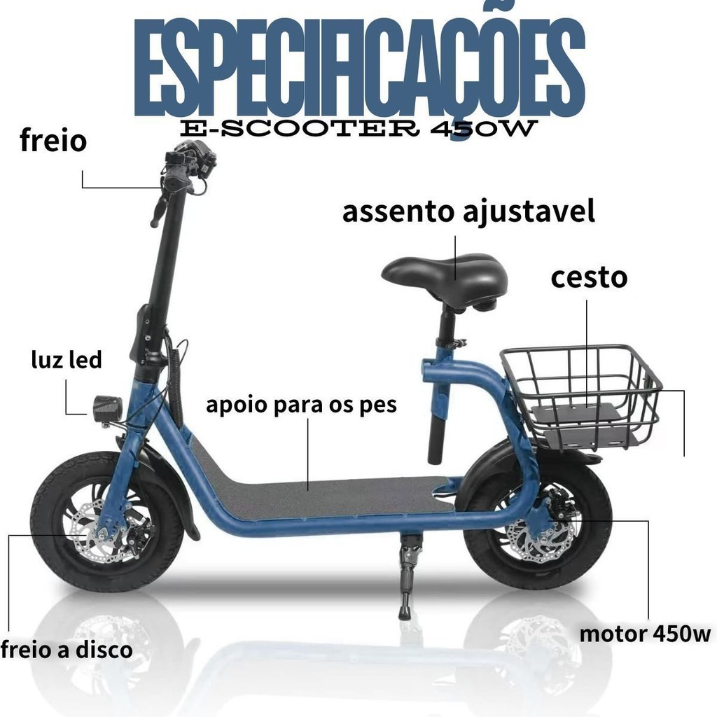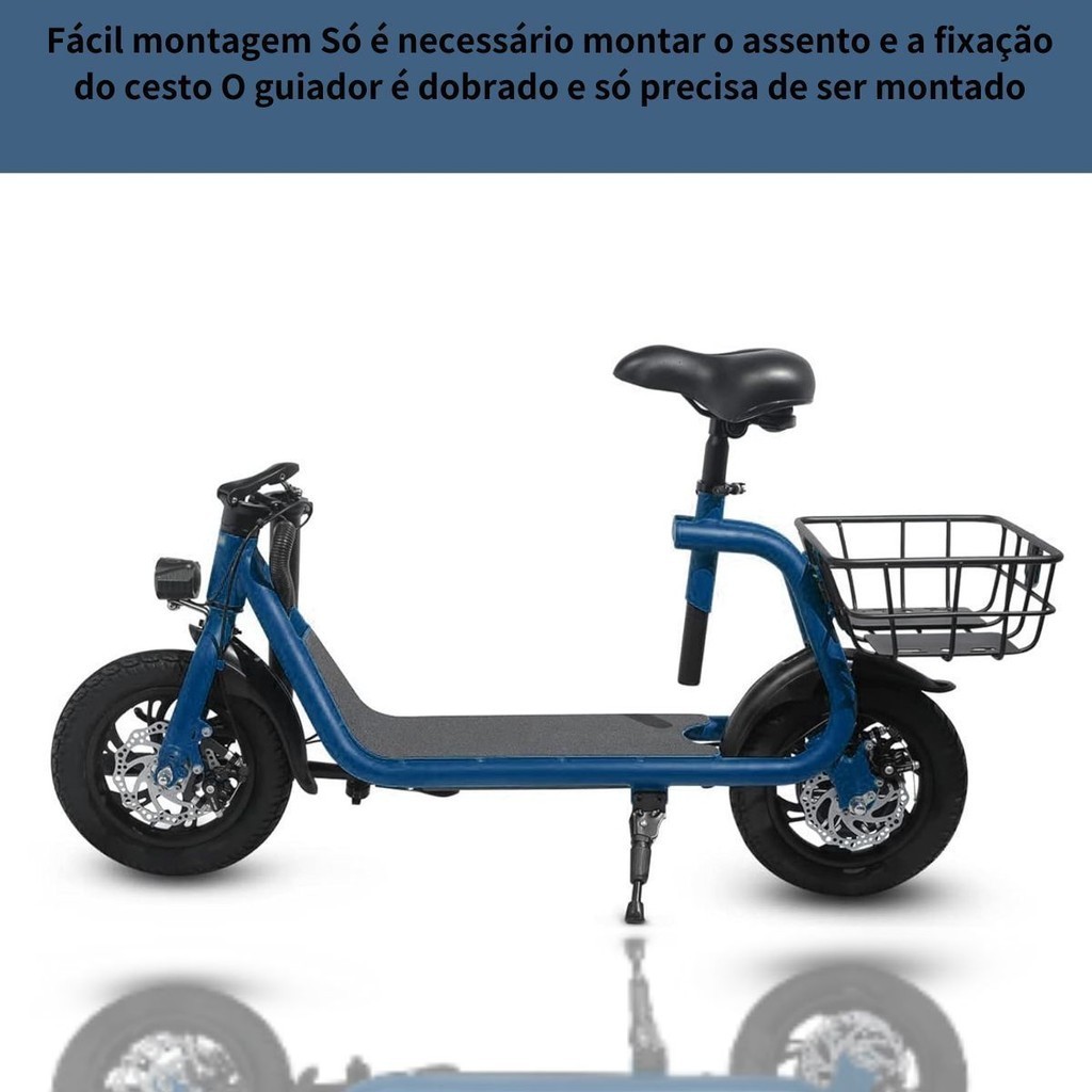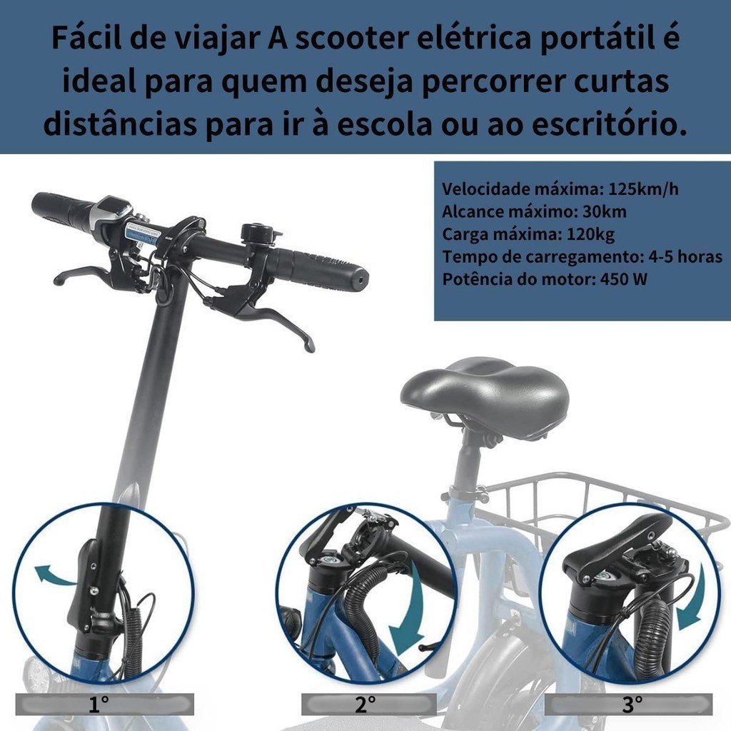 Veículo Elétrico Bicicleta Elétrica Scooter Elétrica 120Kg 450W Com Cesto e Bluetooth