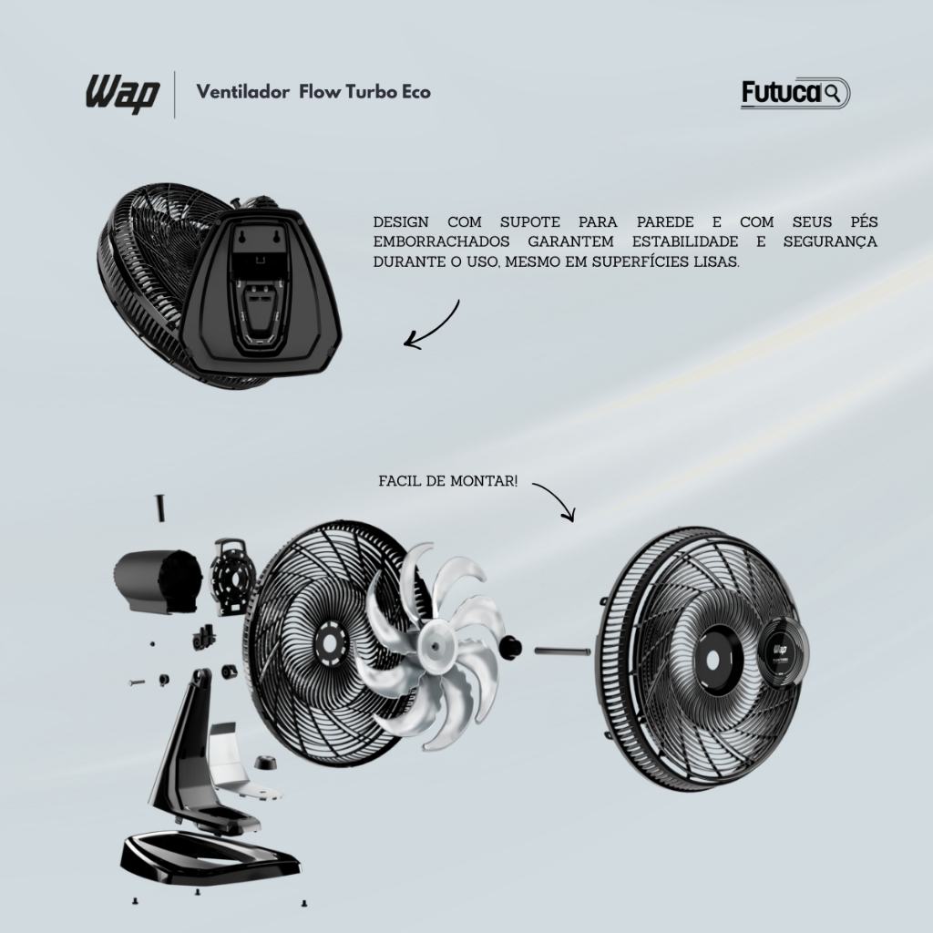 Ventilador 8 Pás 2 em 1 de Mesa Estrutura Plástico 127v 220v Parede Eco