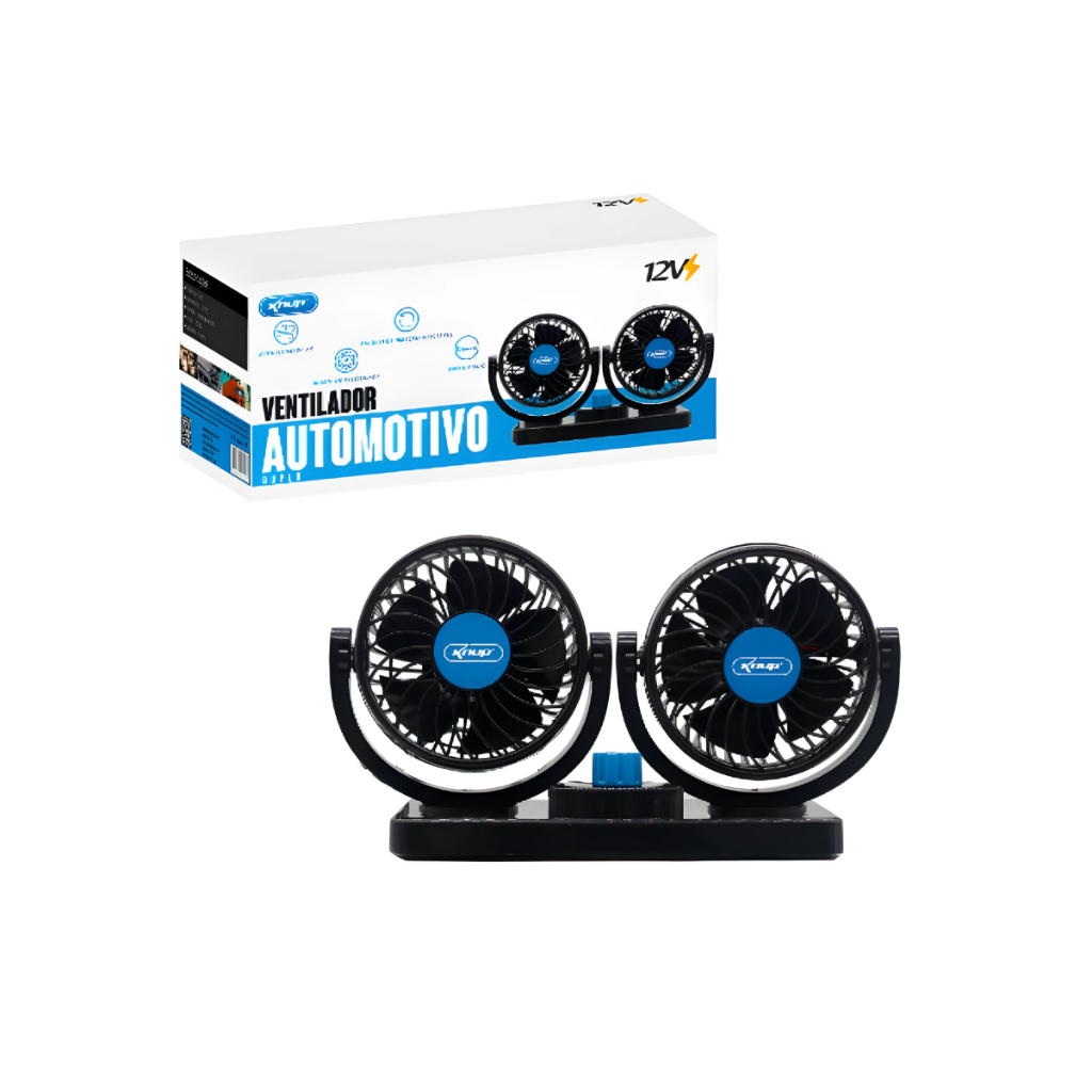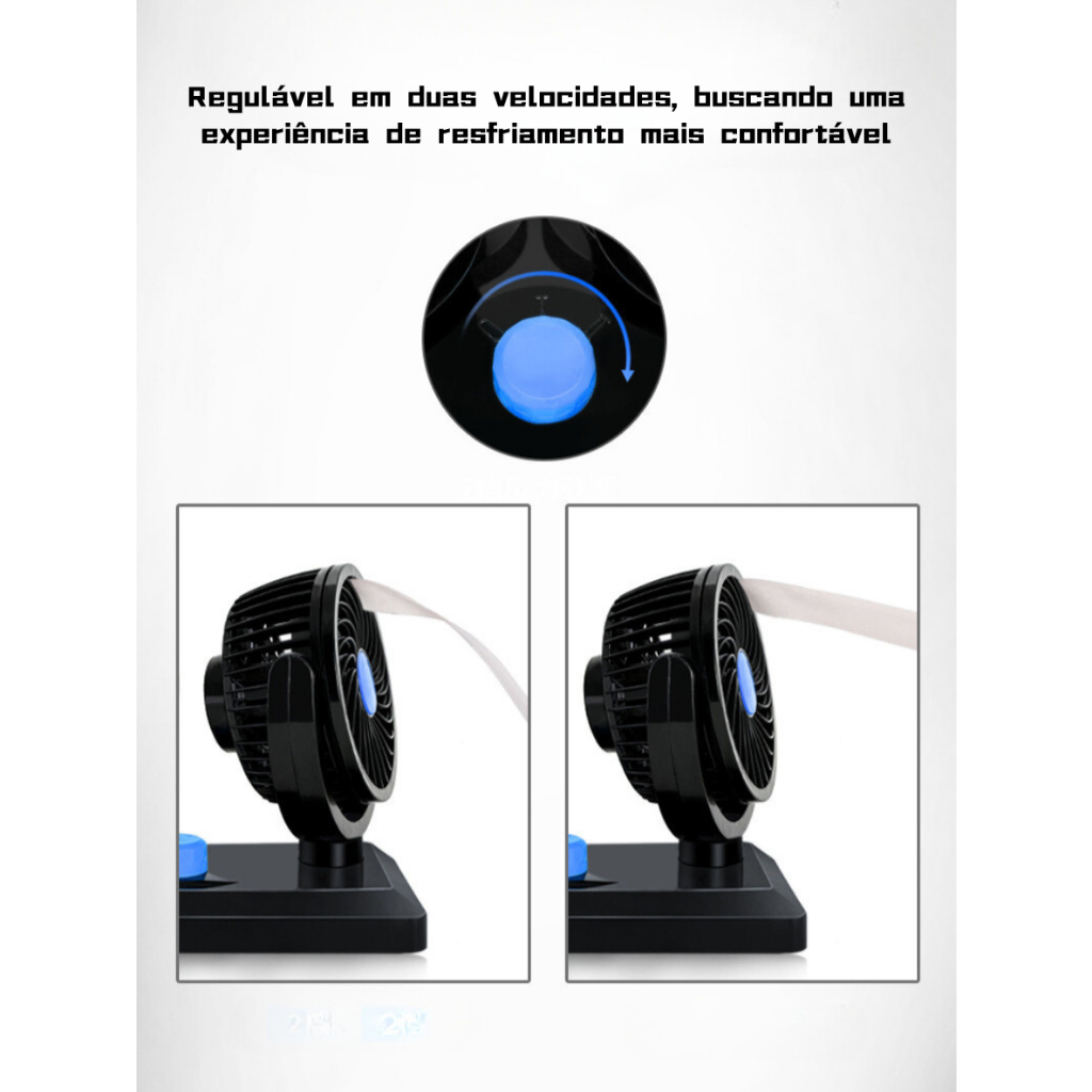 Ventilador Automotivo Giratório Duplo 12v Alto Fluxo De Ar Ajustável Para Carro Van Caminhão 2 Velocidades