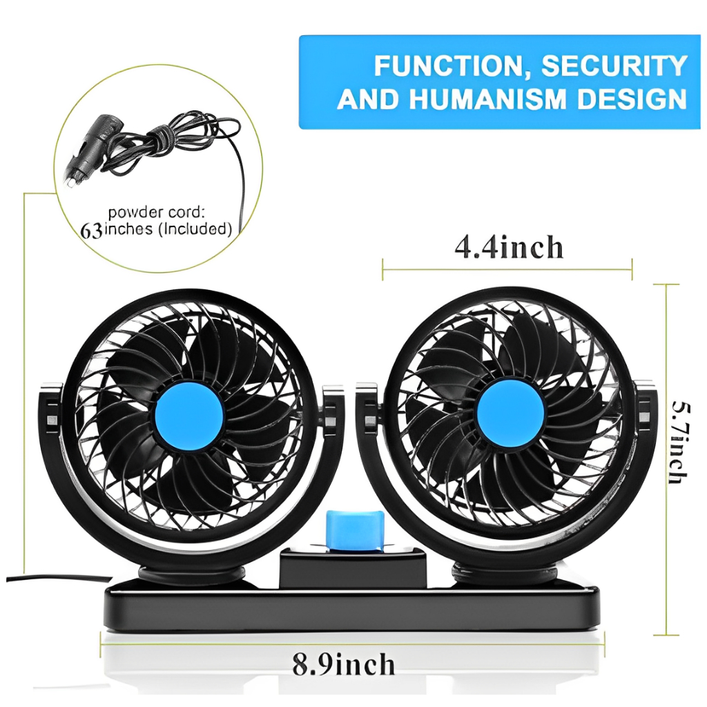 Ventilador De Cabeça Dupla Do Carro Veículo Automóvel Dc 12v Rotação 360°