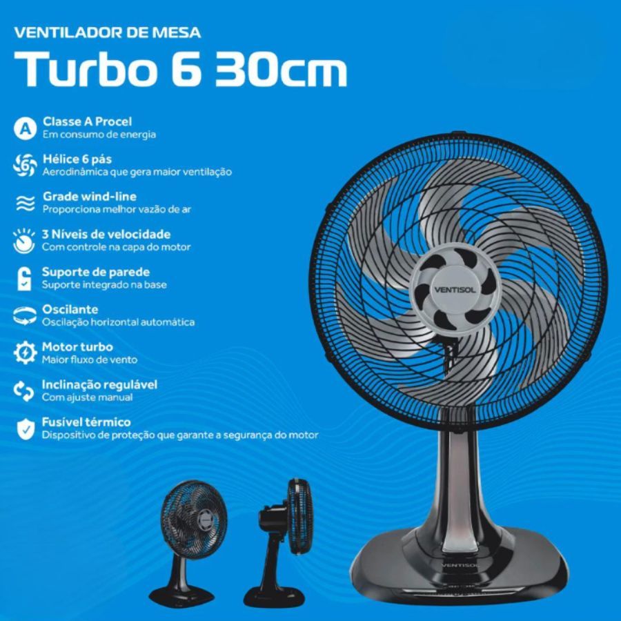 Ventilador Oscilante De Mesa 30Cm 127V Turbo 6 Pás Com 3 Velocidades Aplicável A Vários Cenários