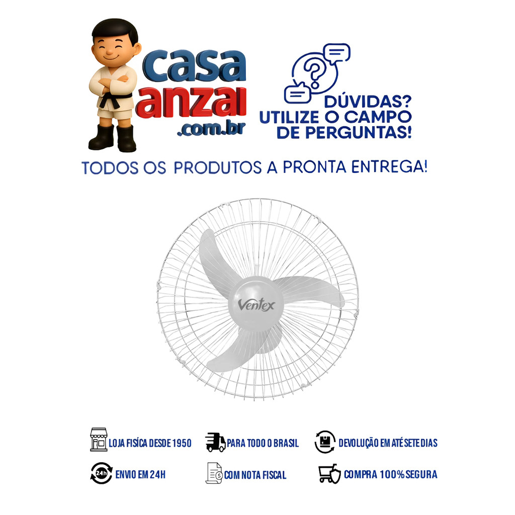 Ventilador Oscilante TEX5 50cm Bivolt Branco Parede Ventex - Potente e Silencioso