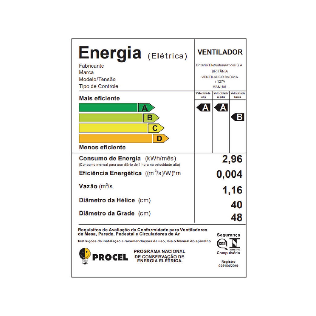 Ventilador de Coluna Britânia 6 Pás de 40cm 160W BVC41A