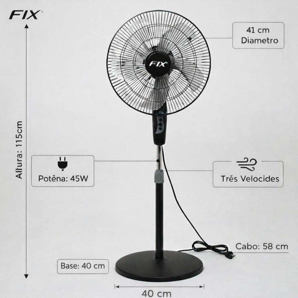 Ventilador de Coluna Fix 41cm 45W 3 Velocidades 127V