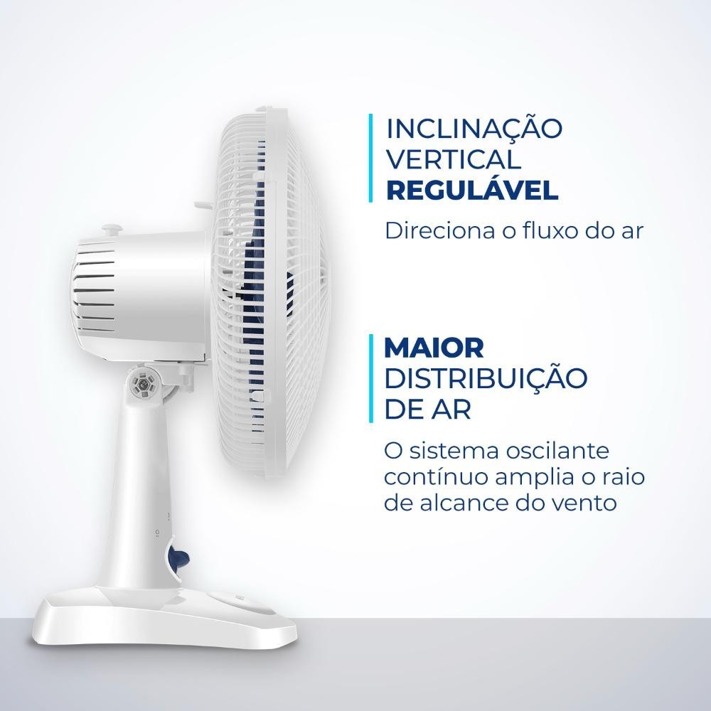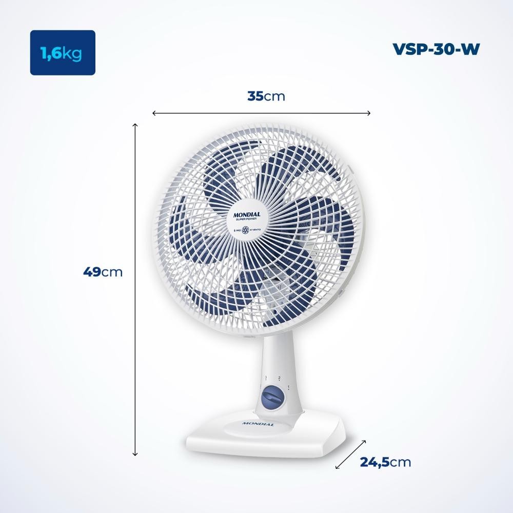 Ventilador de Mesa Mondial Super Power 6 Pás 30cm 127v Branco Azul VSP-30-W