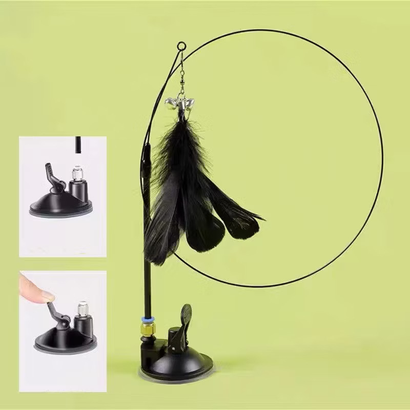 Ventosa Gato Teaser Brinquedo Com Penas Varinha Interativa Engraçado De Cabo Longo Para Gatos Preto