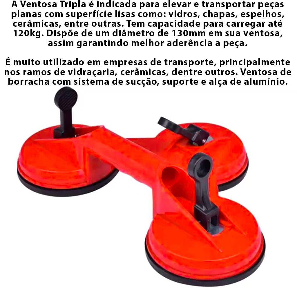 Ventosa Tripla Alta Fixação Resistencia Para Vidros Metais Mármores Espelhos Até 120kg Profissional