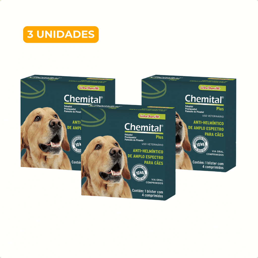 Vermífugo Chemital Plus Para Cães C/ 4 Comprimidos