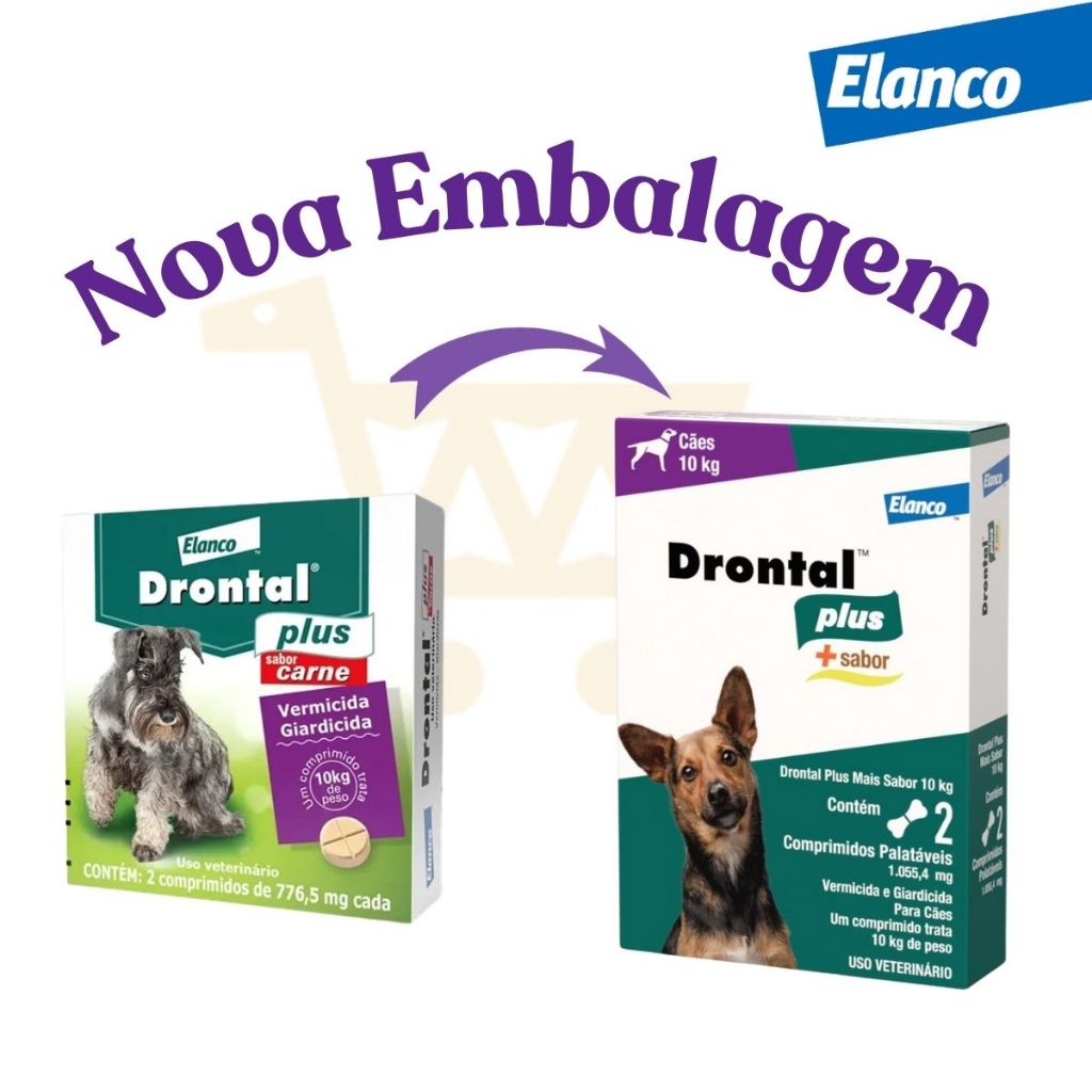 Vermífugo Drontal Plus Carne Cães 10kg 2 Comprimidos Giardia - Elanco