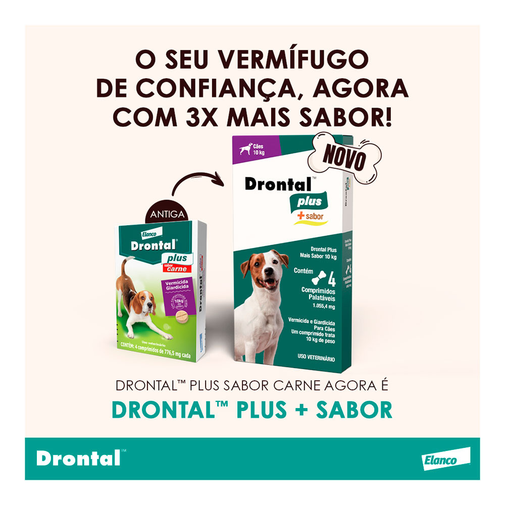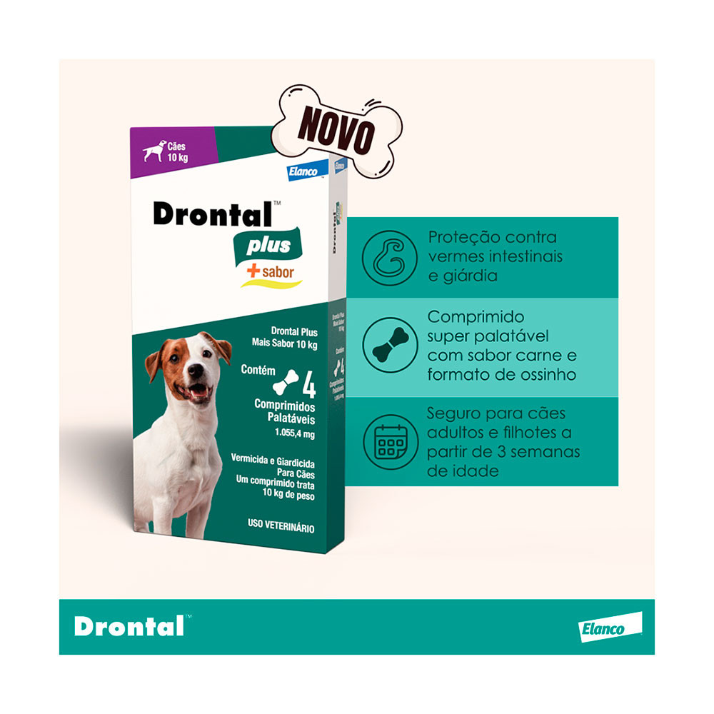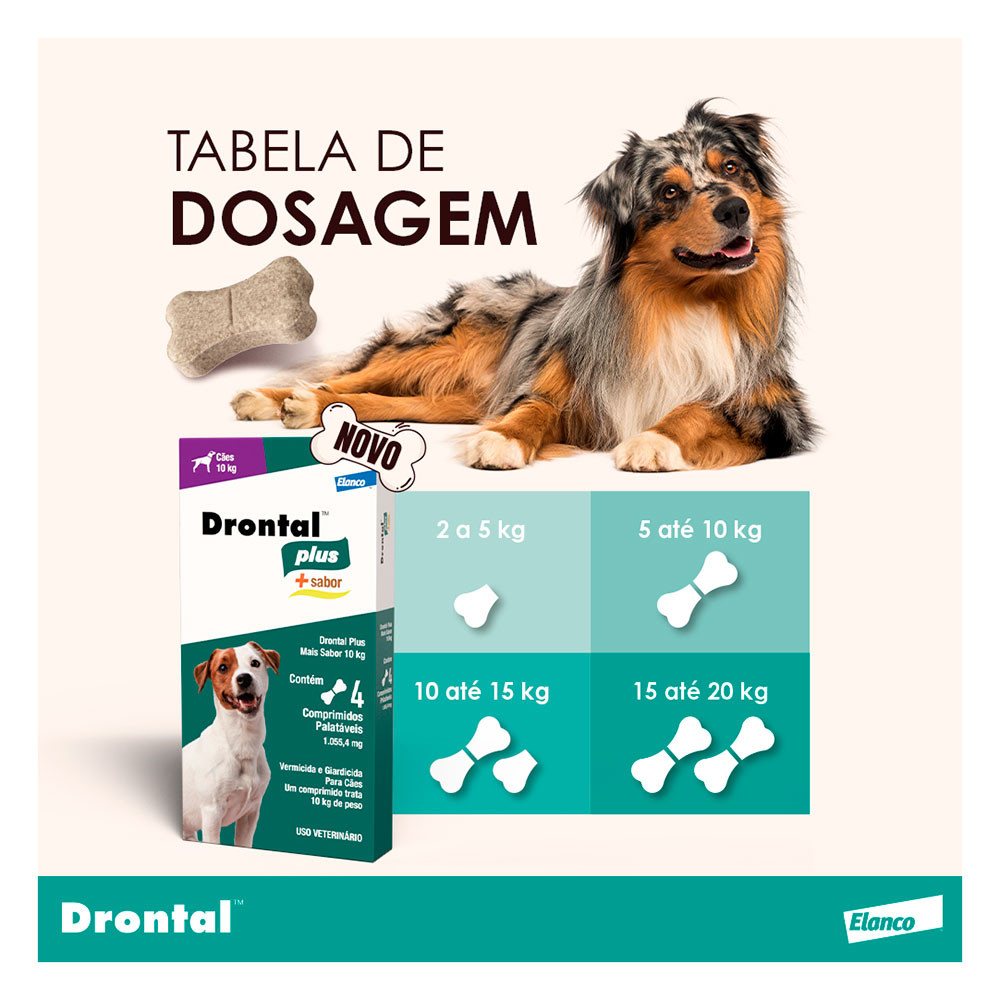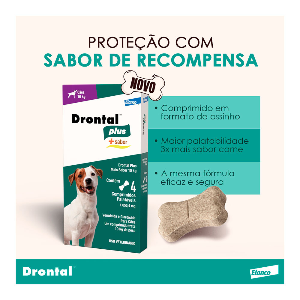 Vermífugo Drontal Plus Para Cães 10kg Elanco +Sabor Carne 4 Comprimidos