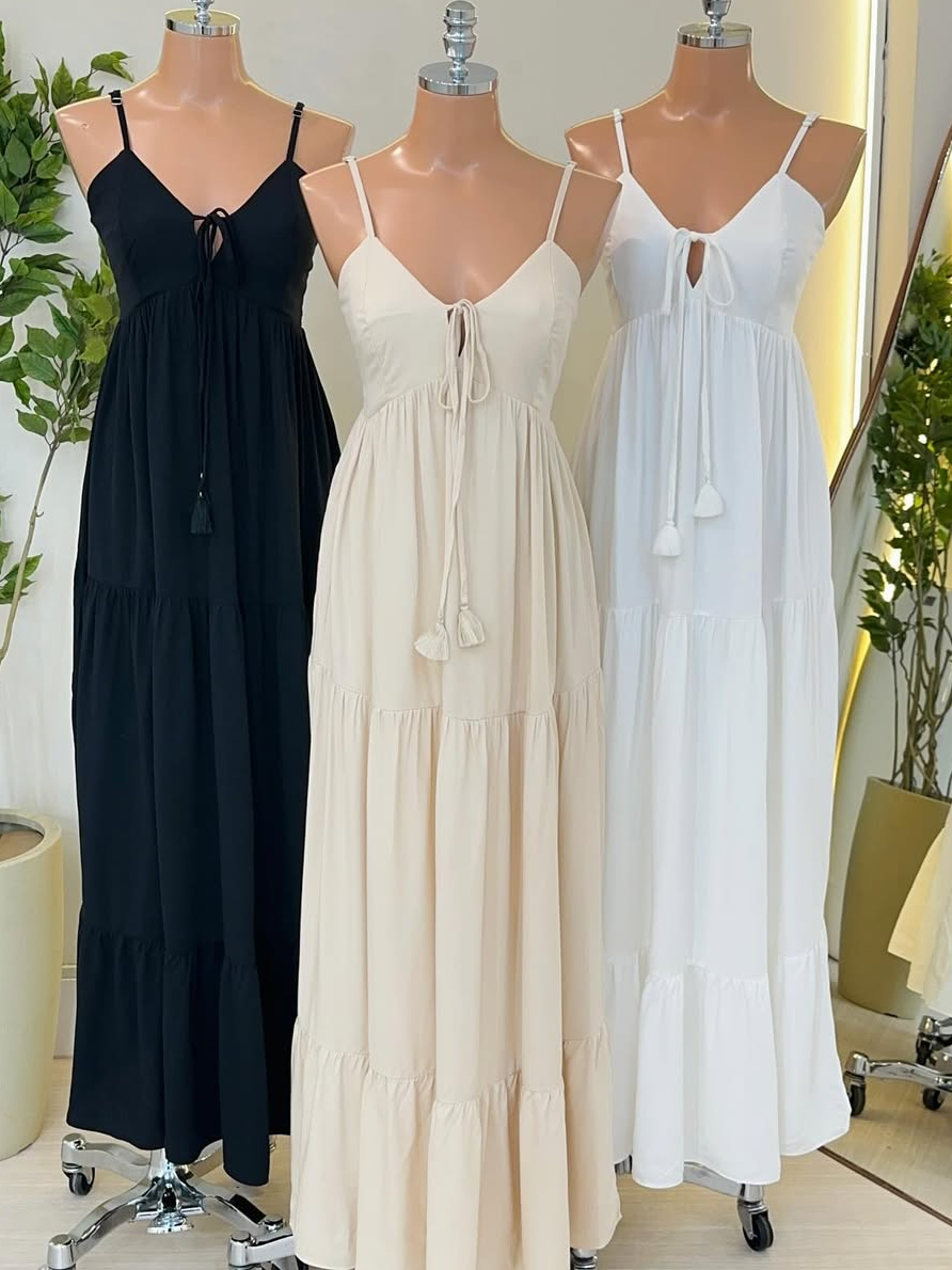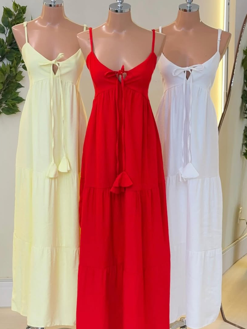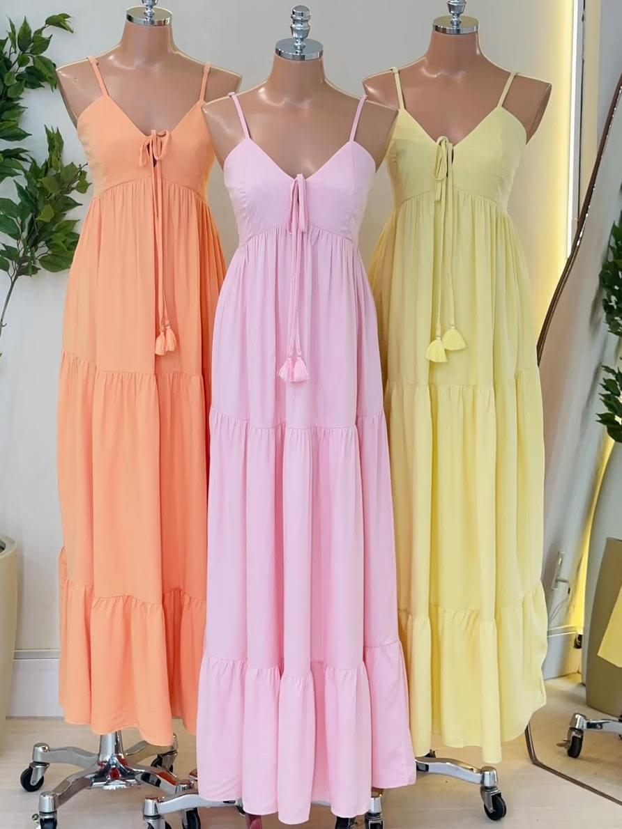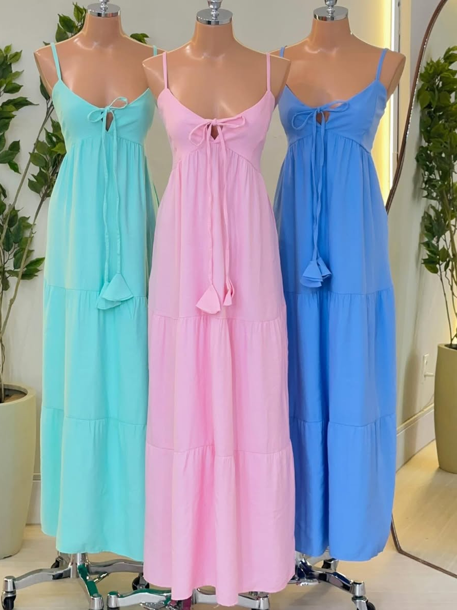 Vestdo Feminino Longo Com Bojo forró, Alça, Elastico na Costa , detalle na frente