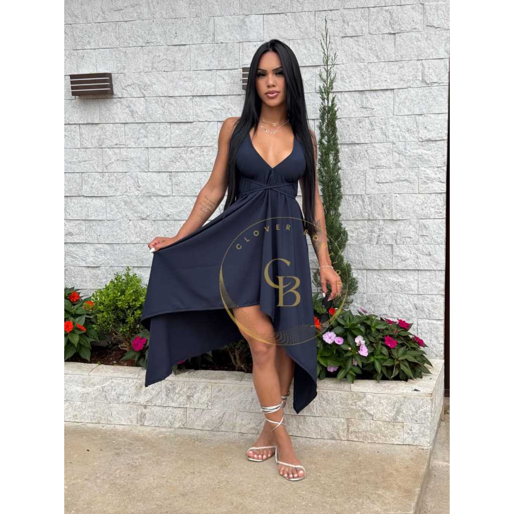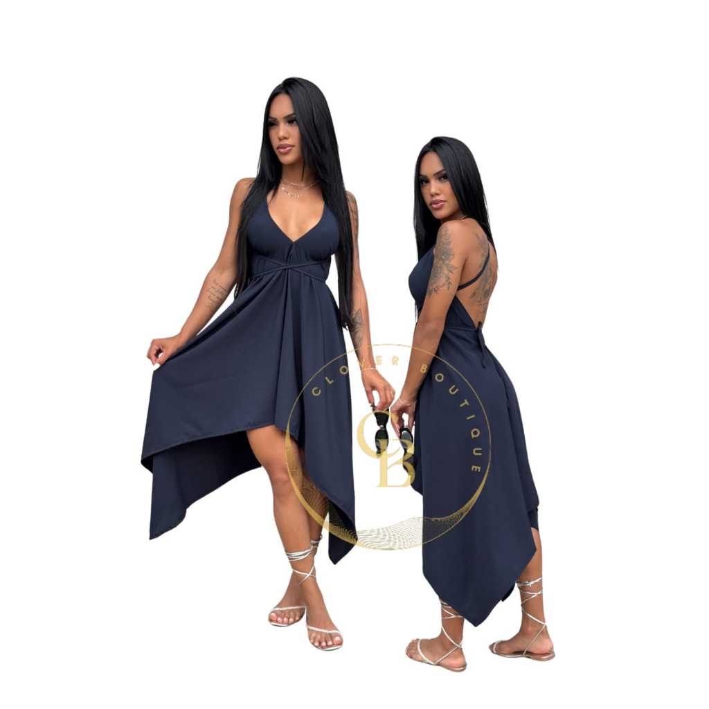 Vestido Casual Envelope Feminino Multiuso Básico Bico Pontas Super Elegante costa nua