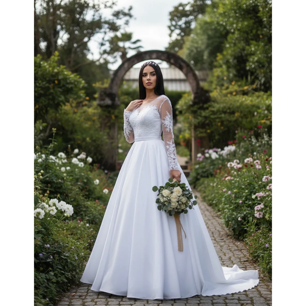Vestido De Noiva Casamento Renda sem Brilho com cauda