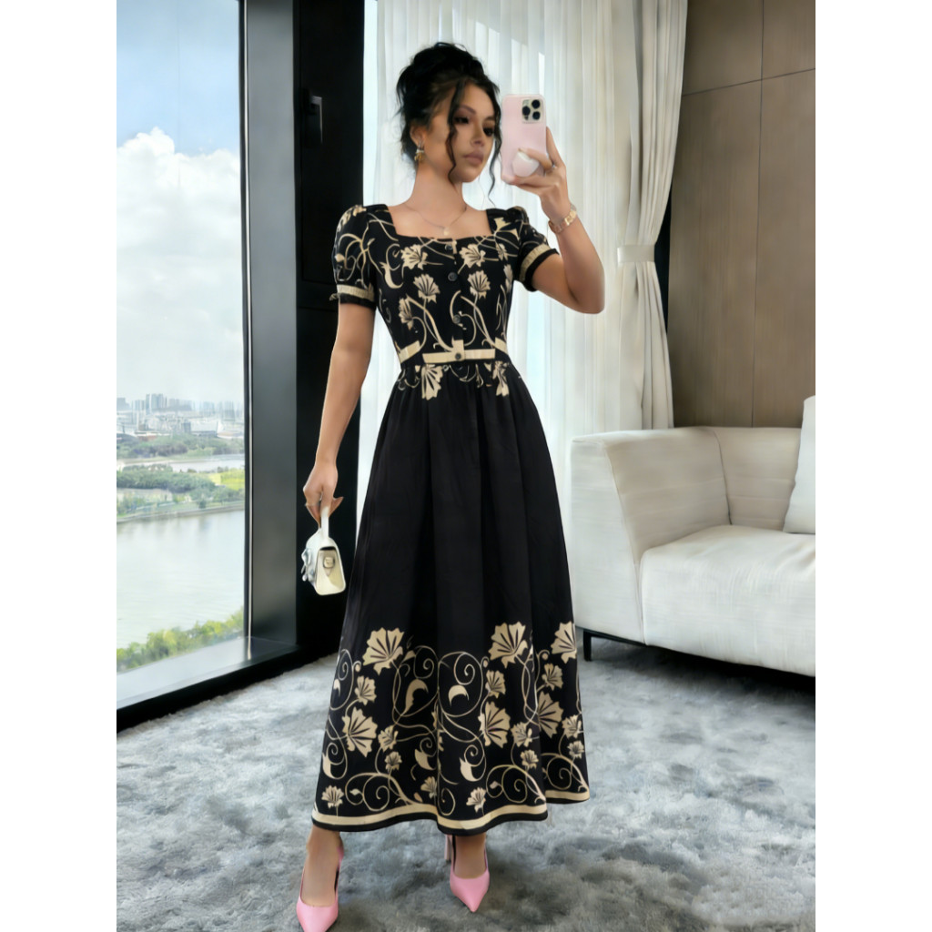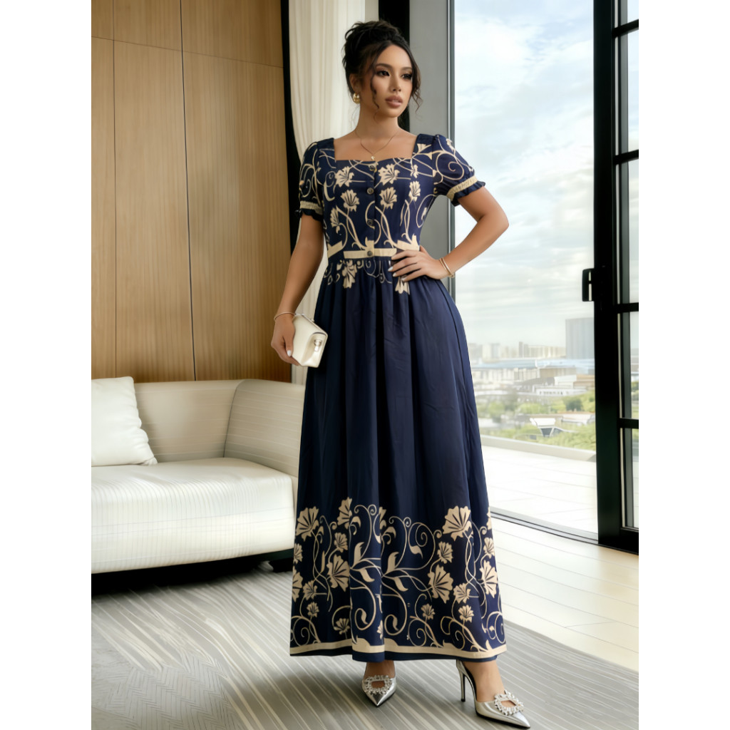 Vestido Elegante Longo Feminino Estampa Manga Curto P M G