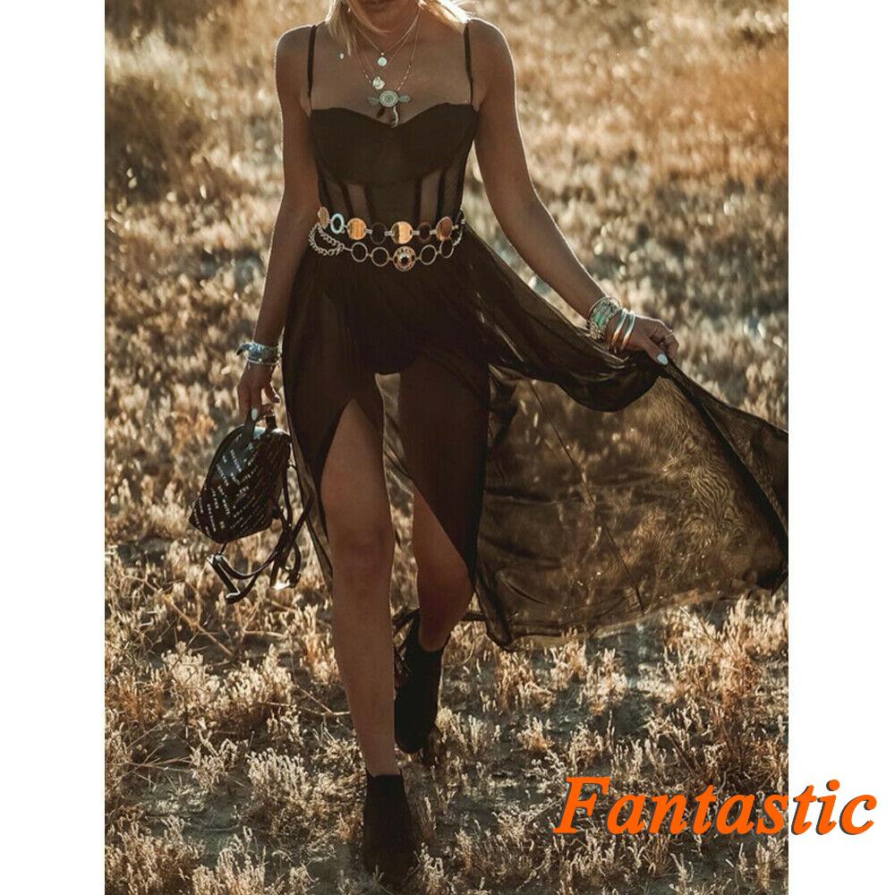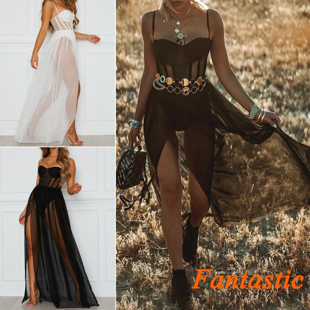 Vestido Feminino De Uma Peça Sem Manga De Cor Única Transparente Preto / Branco