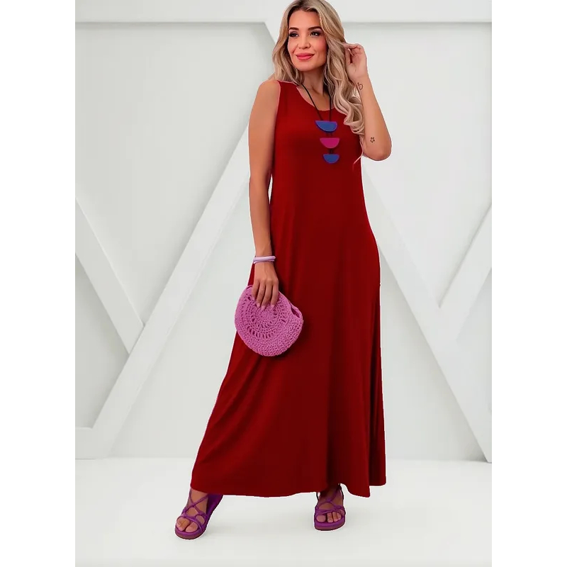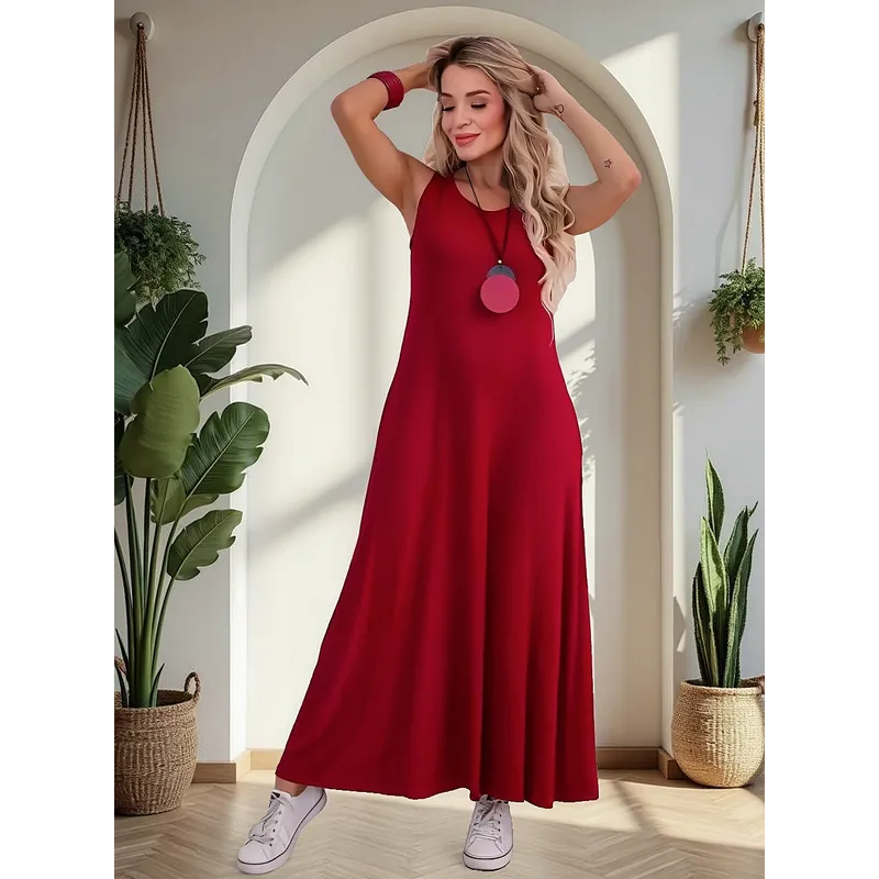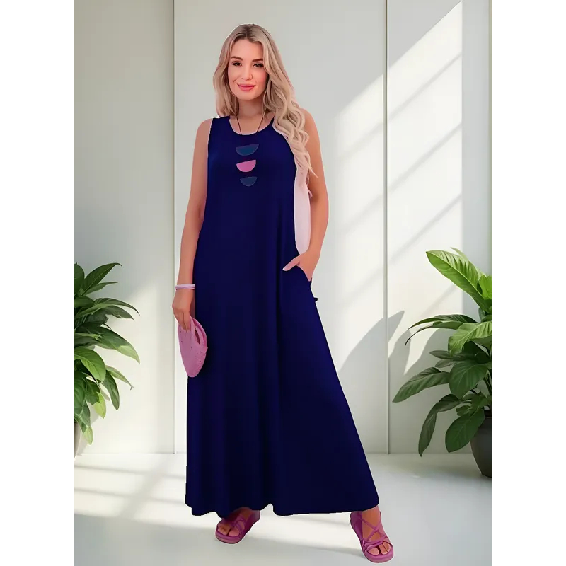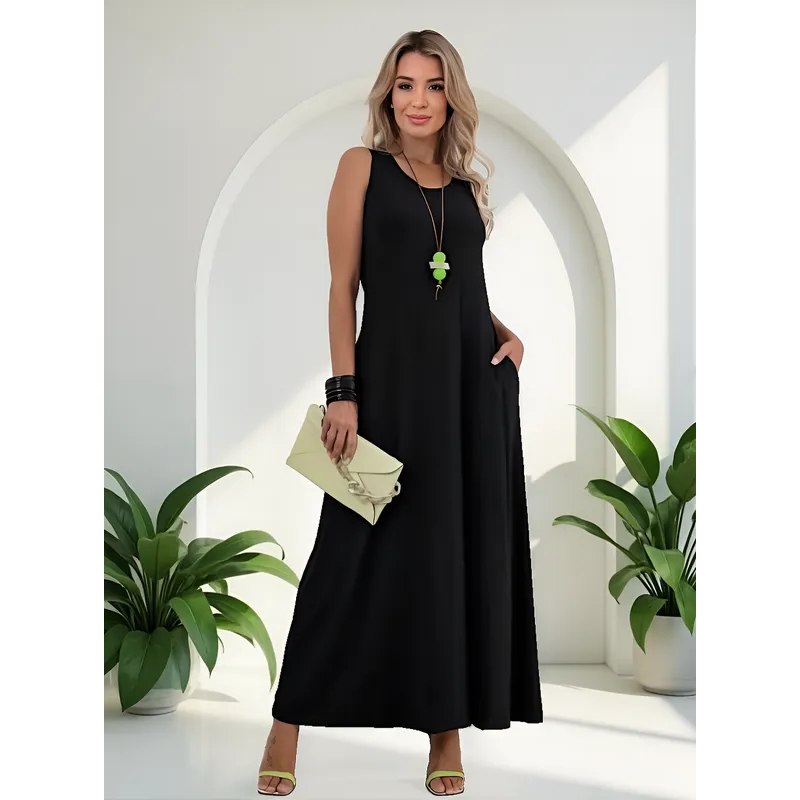 Vestido Feminino Longo Básico em Viscolycra Leve e Confortável com Bolsos Laterais Inverno 506