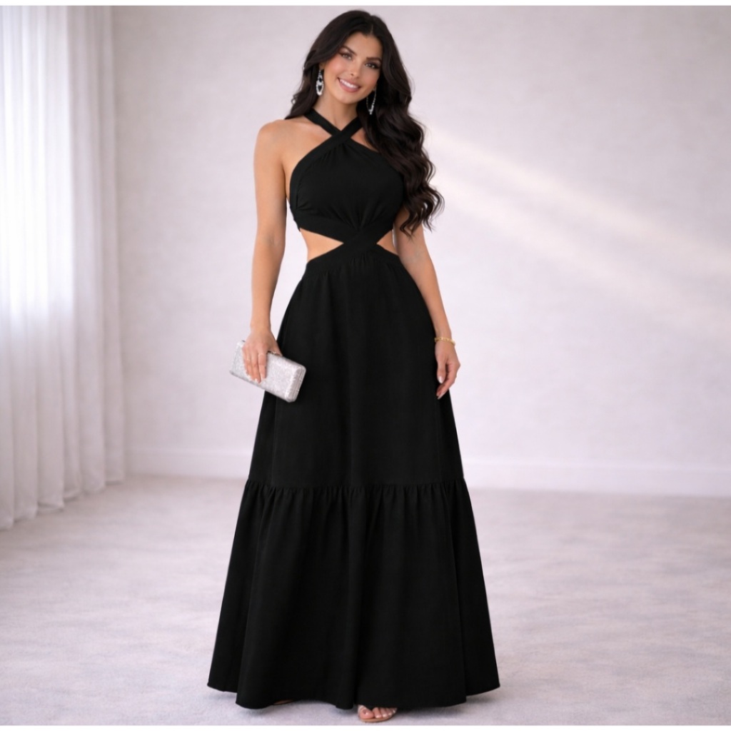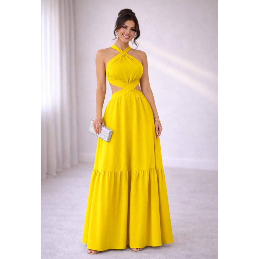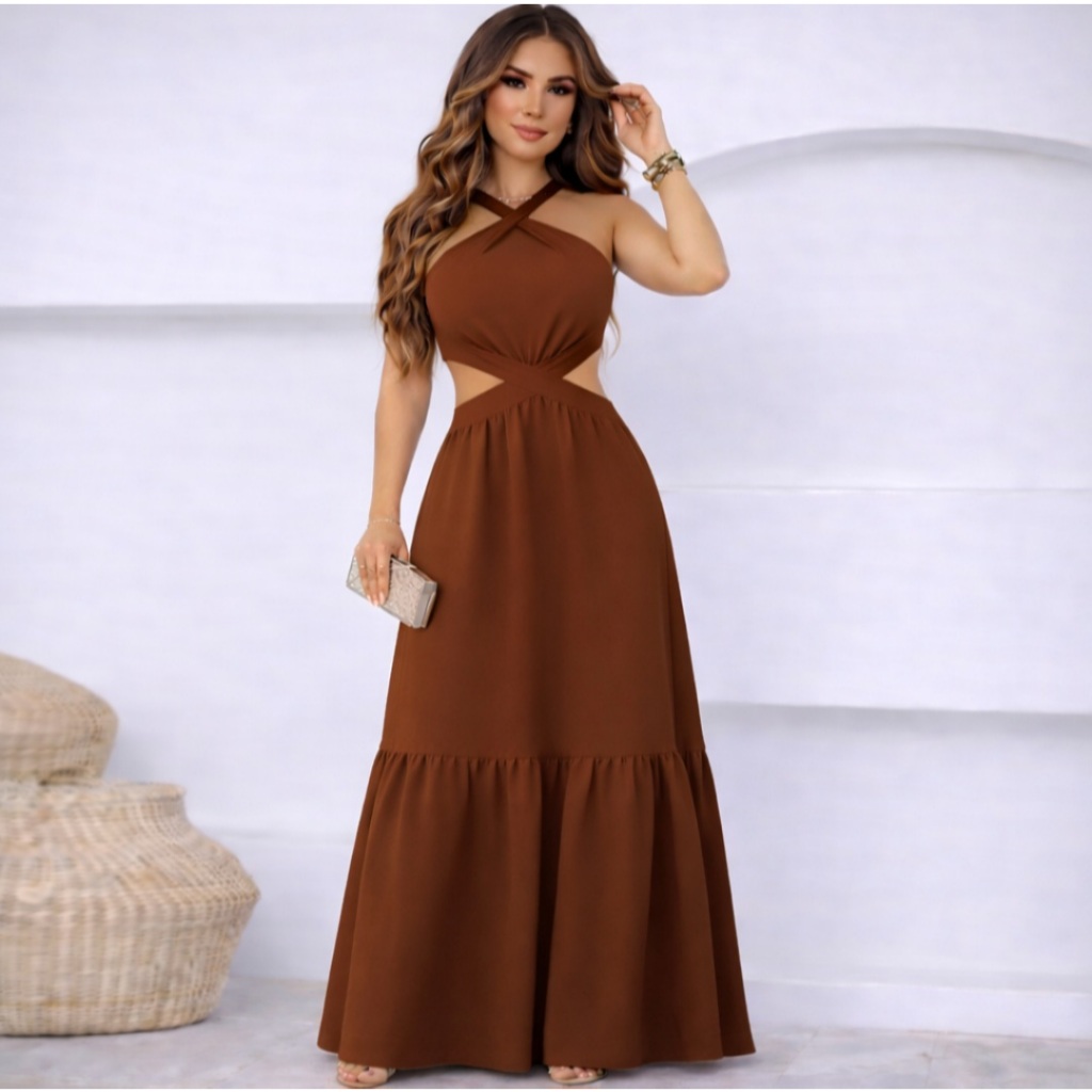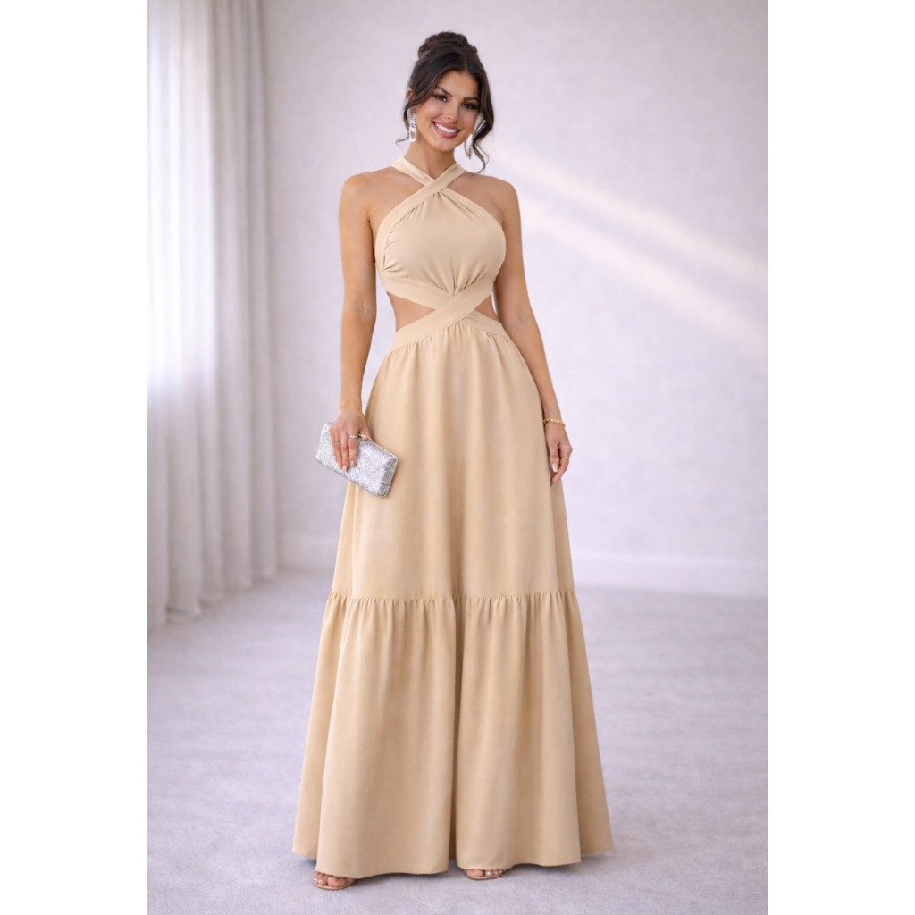Vestido Feminino Longo Frente Única Amarra na Costa DUNA