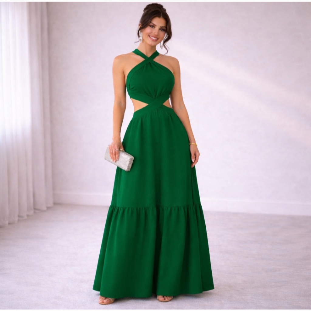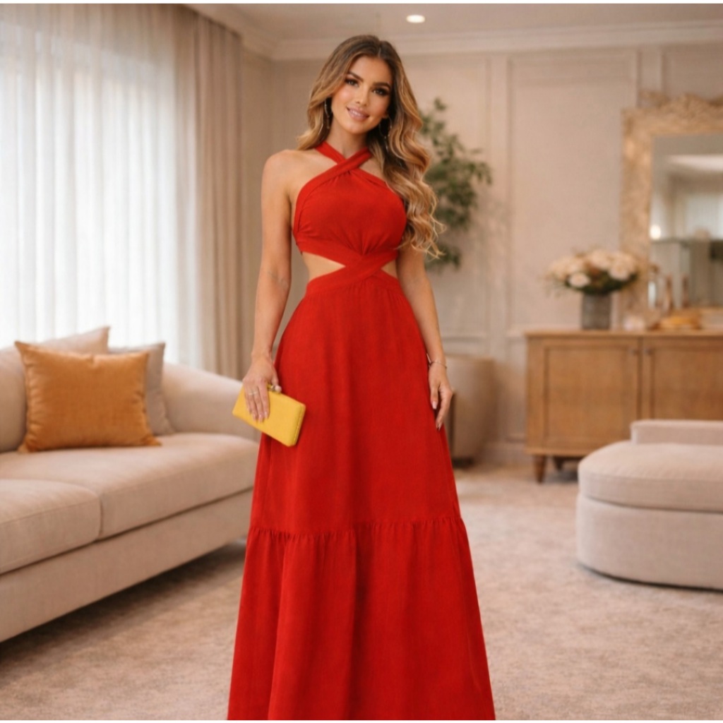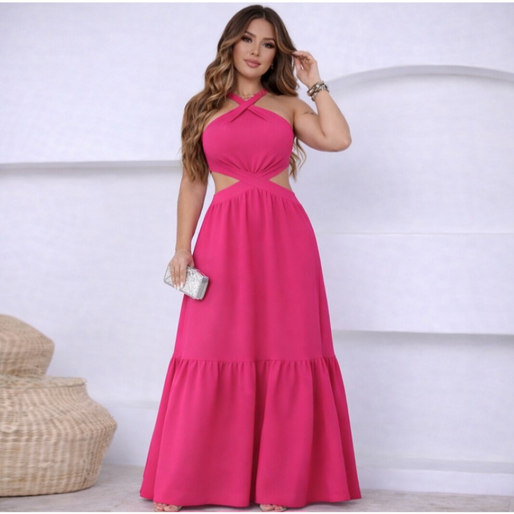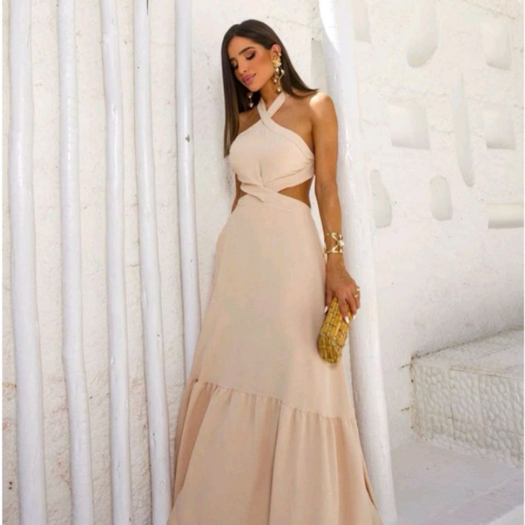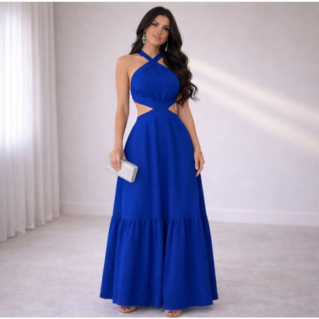 Vestido Feminino Longo Frente Única Amarra na Costa DUNA